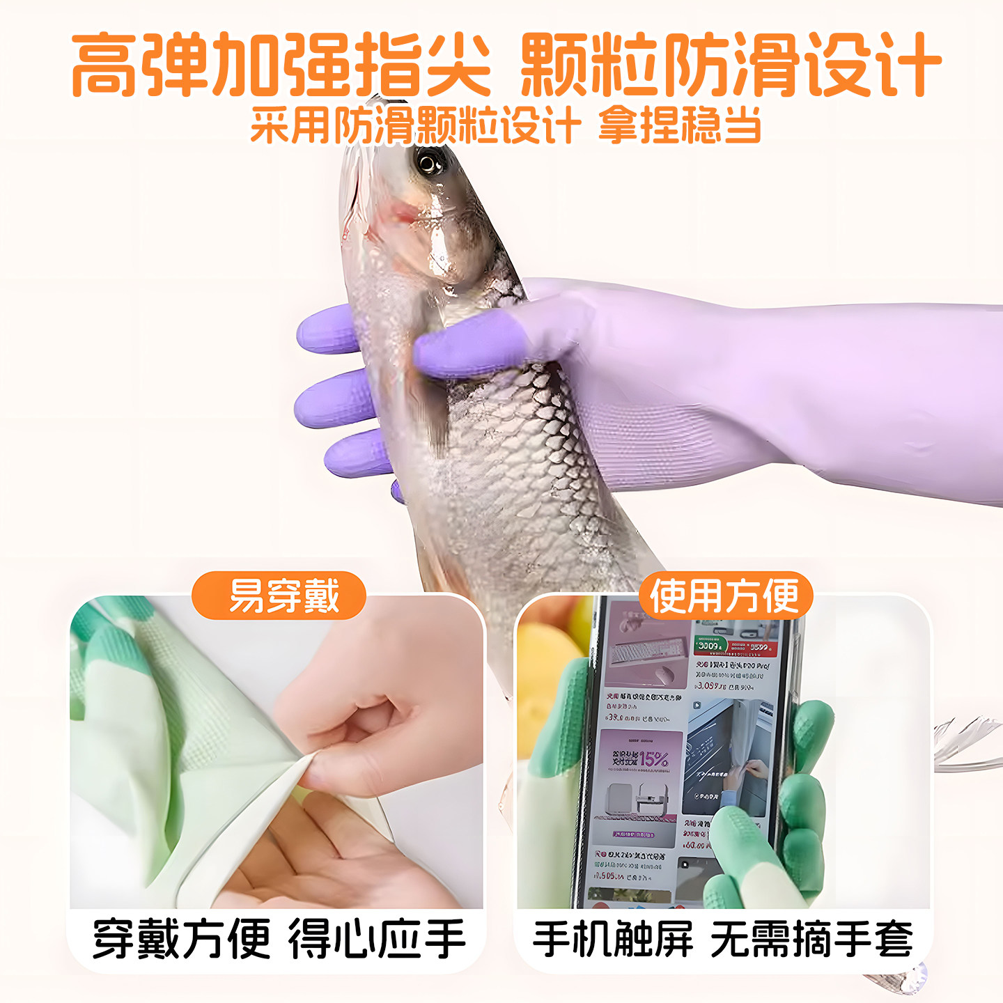 洗碗手套女家用厨房耐用型贴手防水胶皮手套刷碗做家务清洁洗衣服