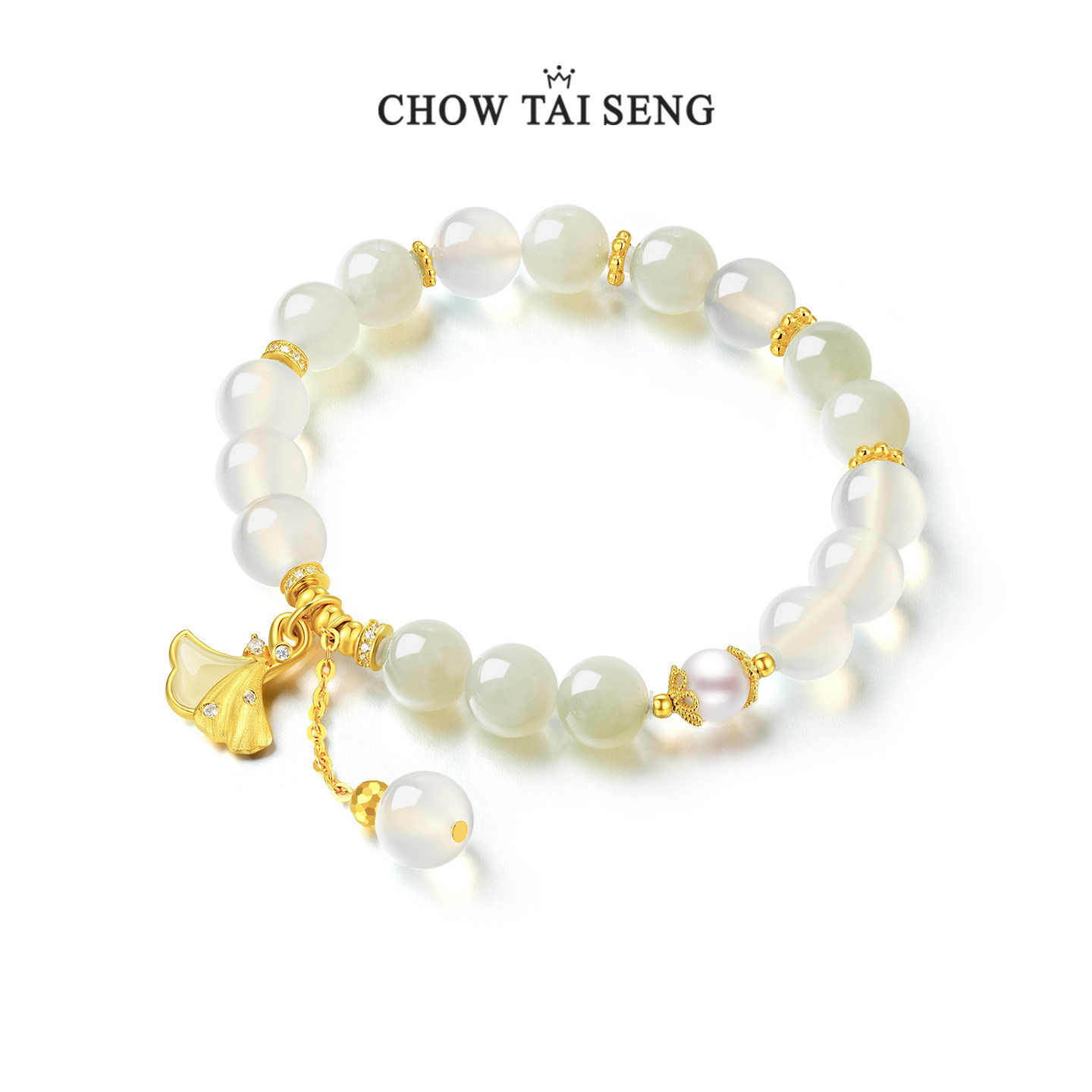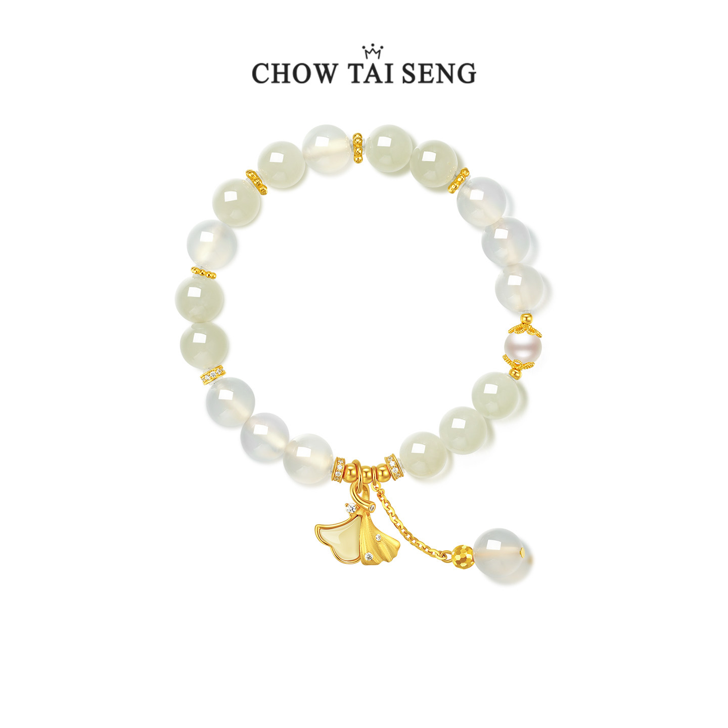 周大生三生有杏手串银手链女和田玉珍珠手饰品生日礼物送女朋友