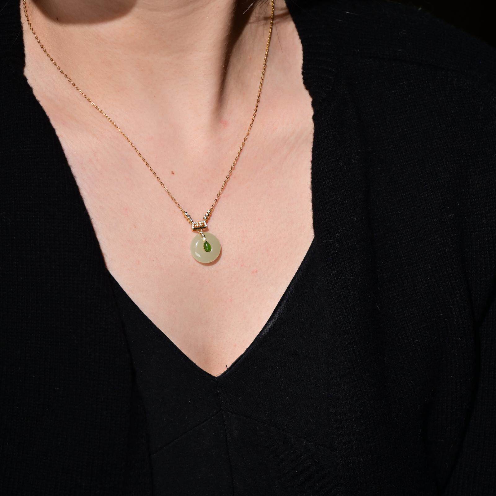 中玉智谷天然和田玉平安扣吊坠锁骨链女复古宫廷风设计时尚