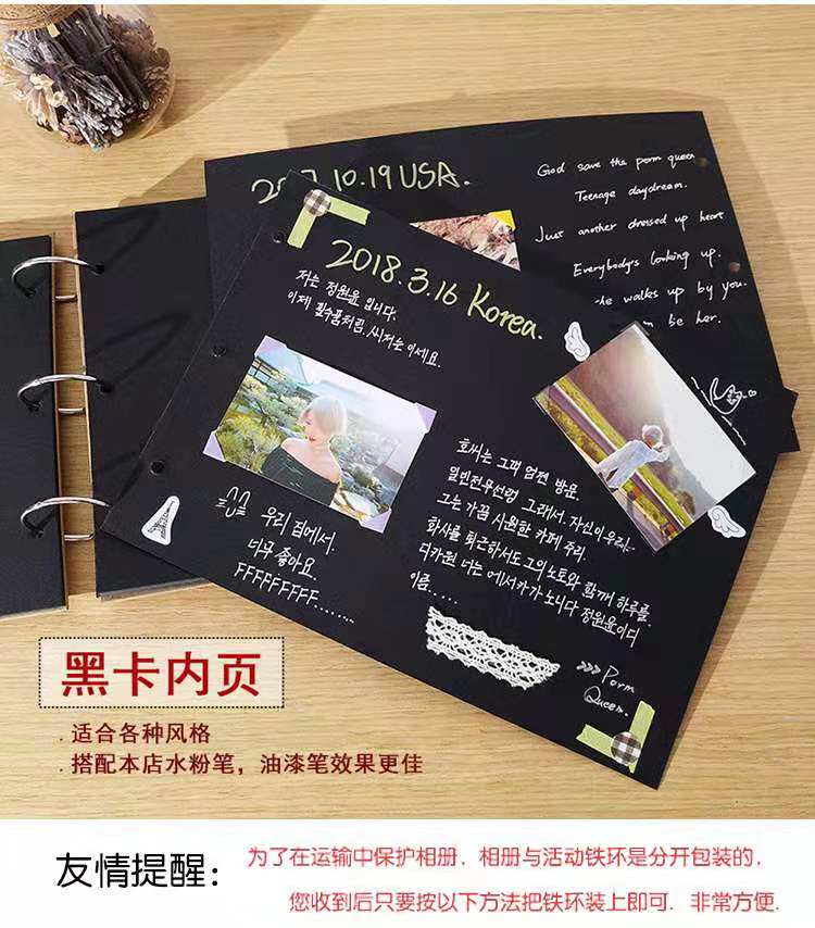 A4黑色相册本diy手工制作纪念册成长自制情侣拍立得生日相簿影集