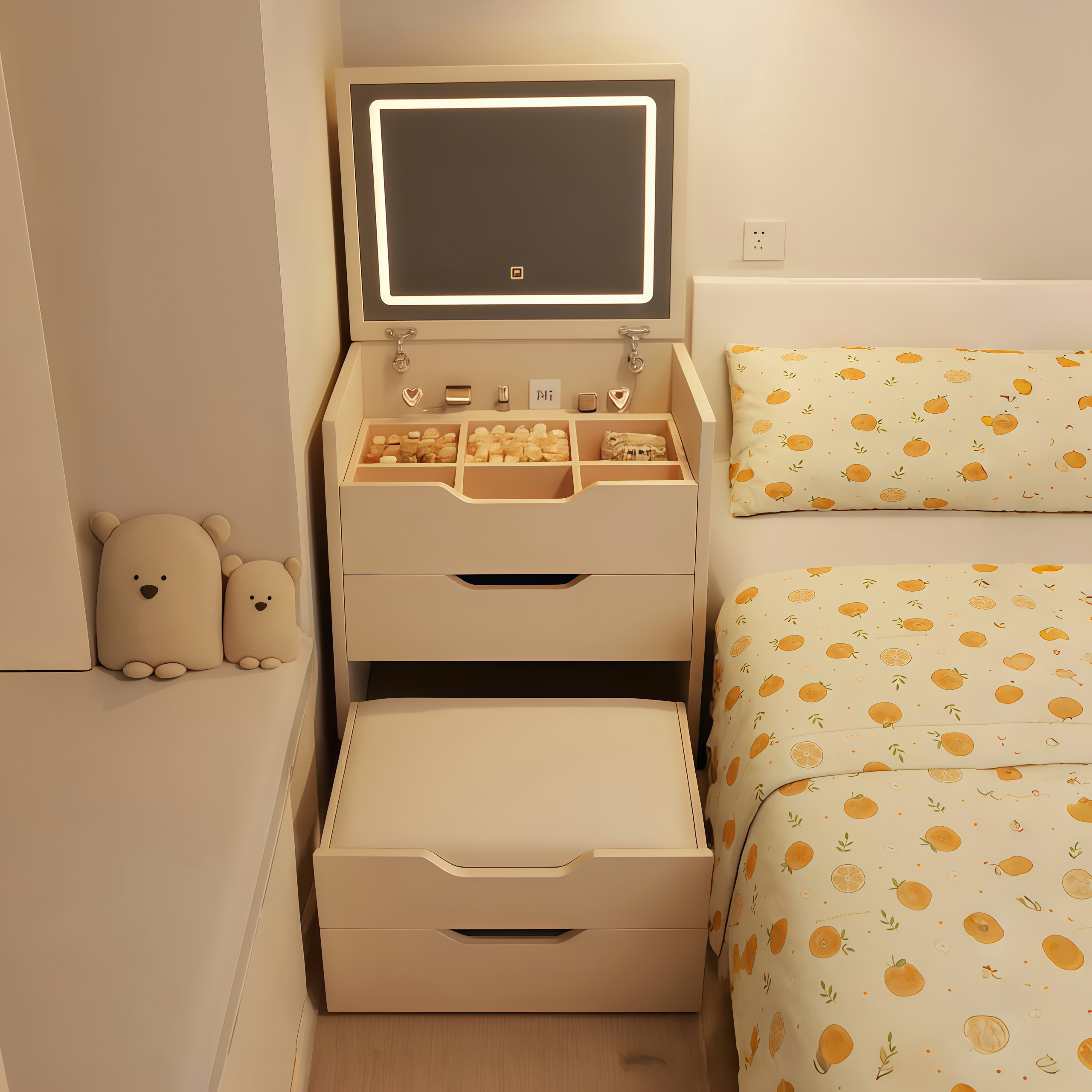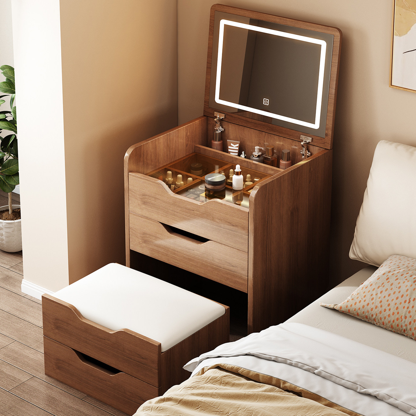 梳妆台小户型卧室家用简约翻盖收纳柜斗柜一体书桌中古风化妆桌子