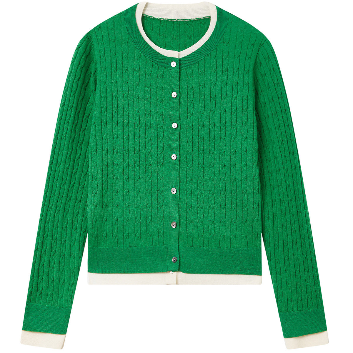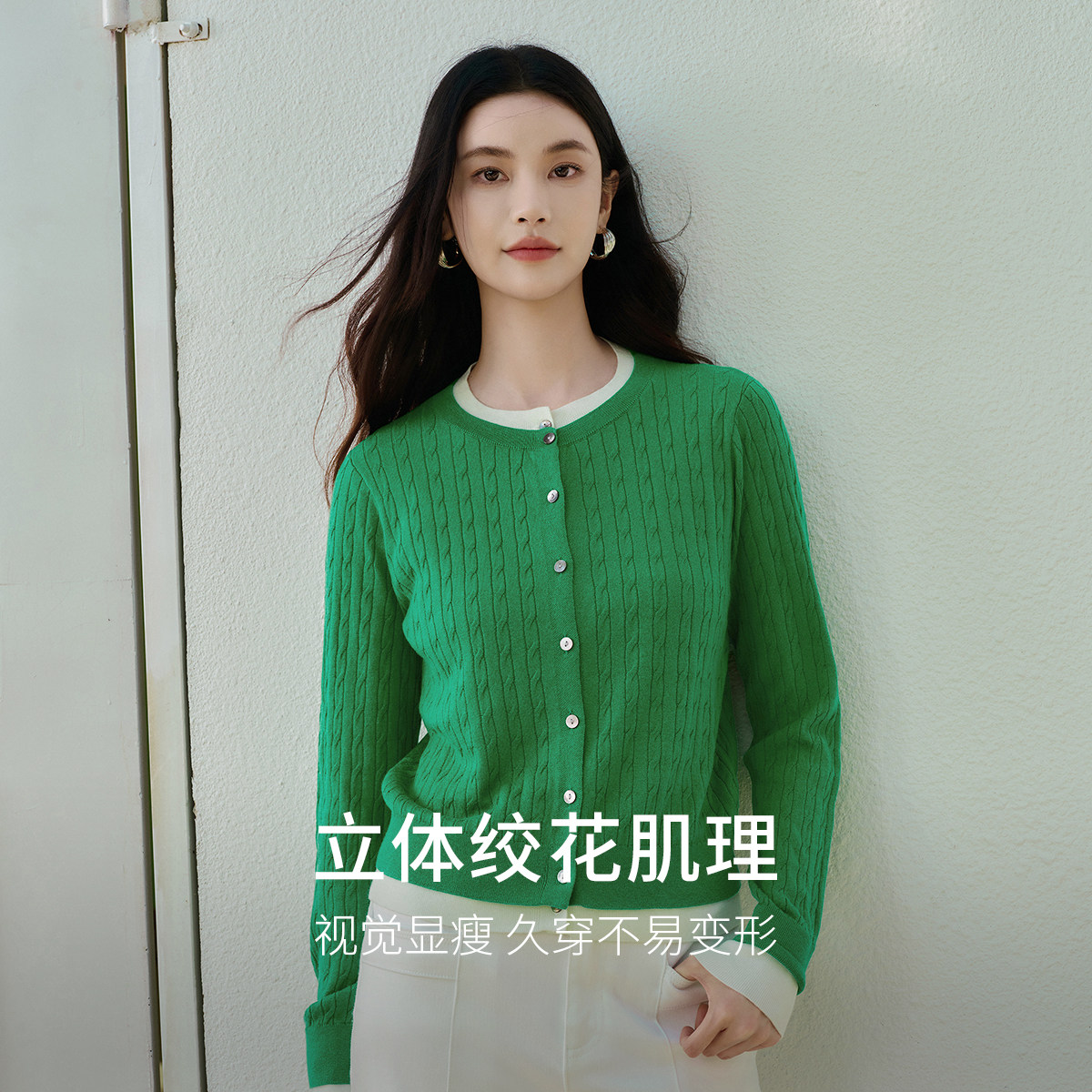 2026新款女装宽松针织开衫纯棉春秋外套纯色百搭圆领毛衣针织衫潮
