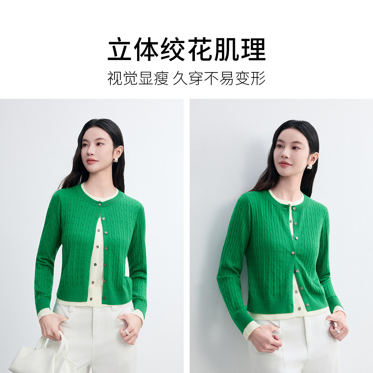 FINITY菲妮迪针织衫2026春新款简约小香风假两件拼接圆领开衫女装