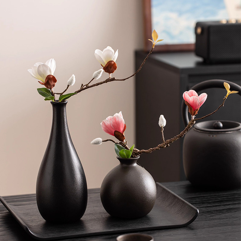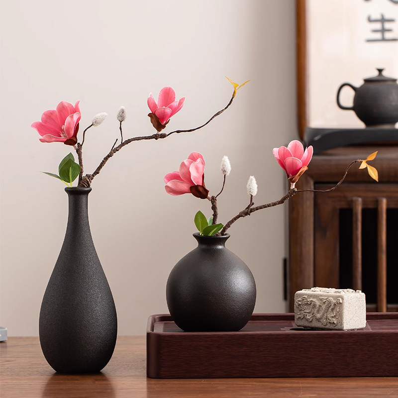 高级感中式复古黑色客厅干花装饰摆件陶瓷小花瓶茶几禅意插花玄关