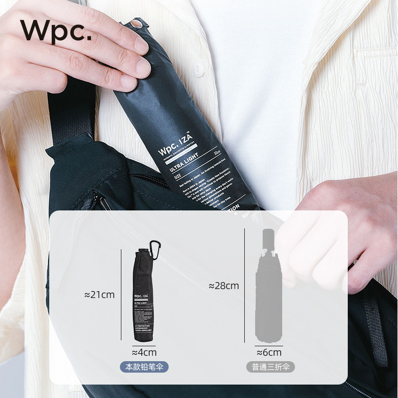 wpc防晒伞超轻小巧便携遮阳伞男士晴雨两用伞防紫外线黑胶太阳伞