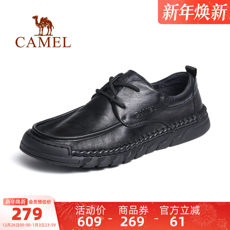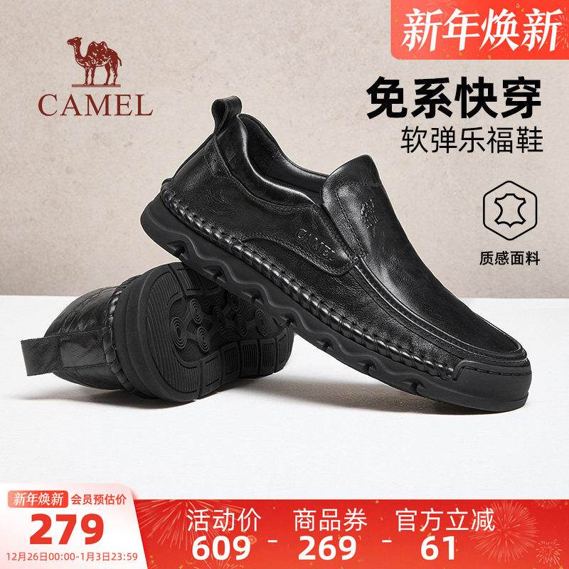 骆驼男鞋2025秋季新款真皮防滑耐磨软底舒适正装休闲爸爸商务皮鞋