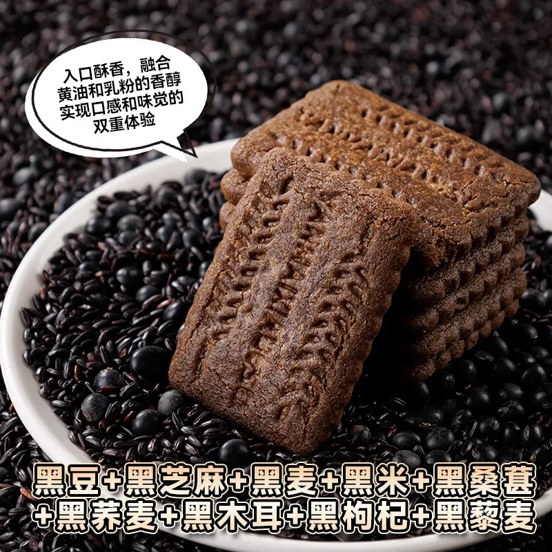 九黑藜麦谷物饼干无蔗糖全麦代餐粗粮解馋小零食袋装高纤黑麦健康
