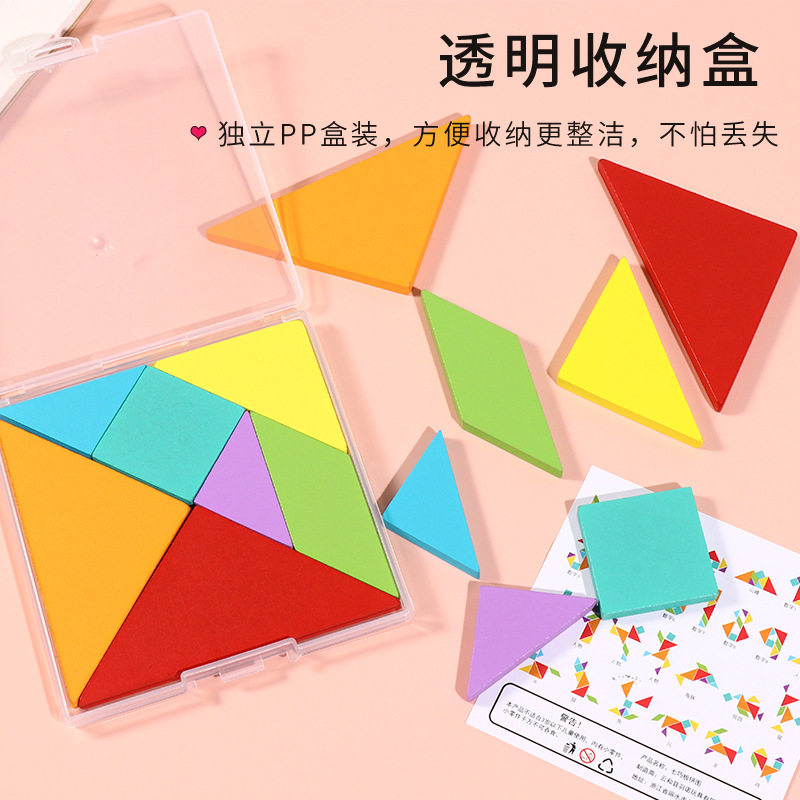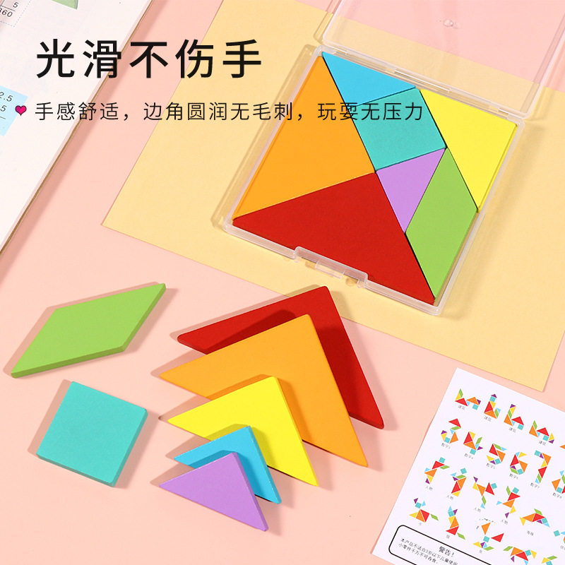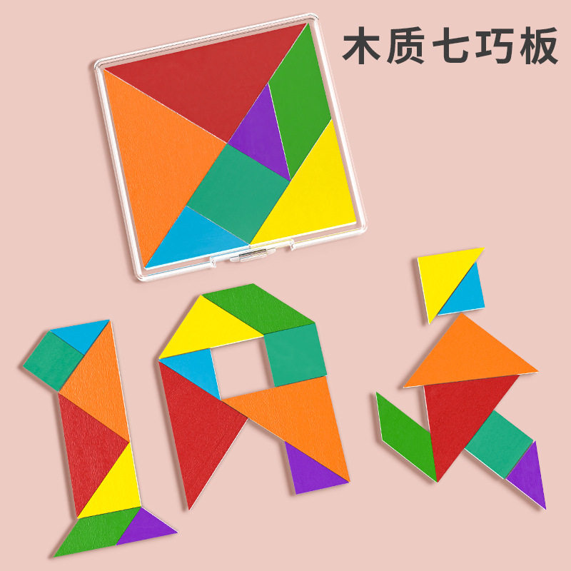 木质七巧板智力拼图拼板益智玩具几何体形状玩具小学生一年级教具 脑力开发玩早教
