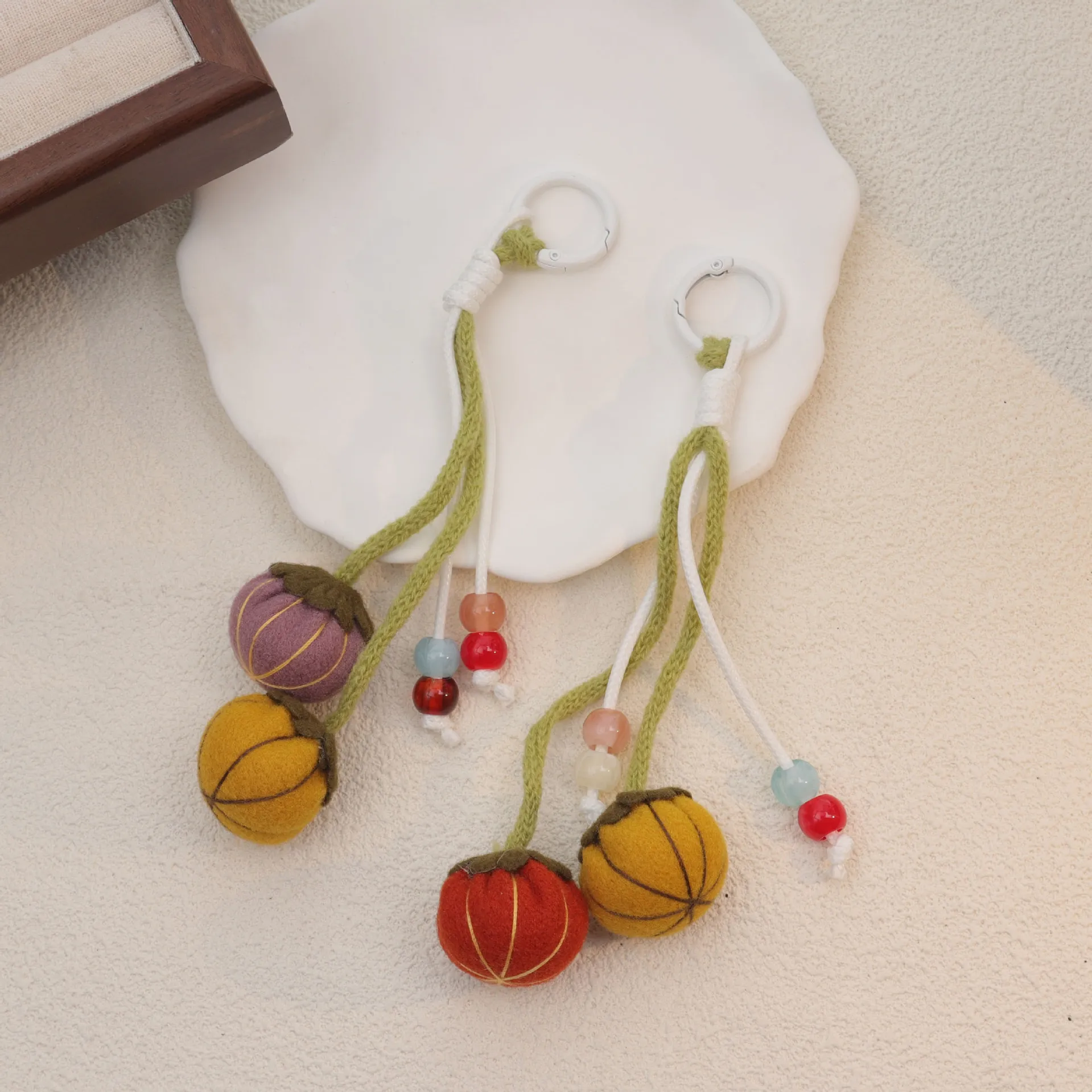 韩系可爱钥匙南瓜花苞串珠挂件包挂情侣礼物钩织可爱毛线挂饰