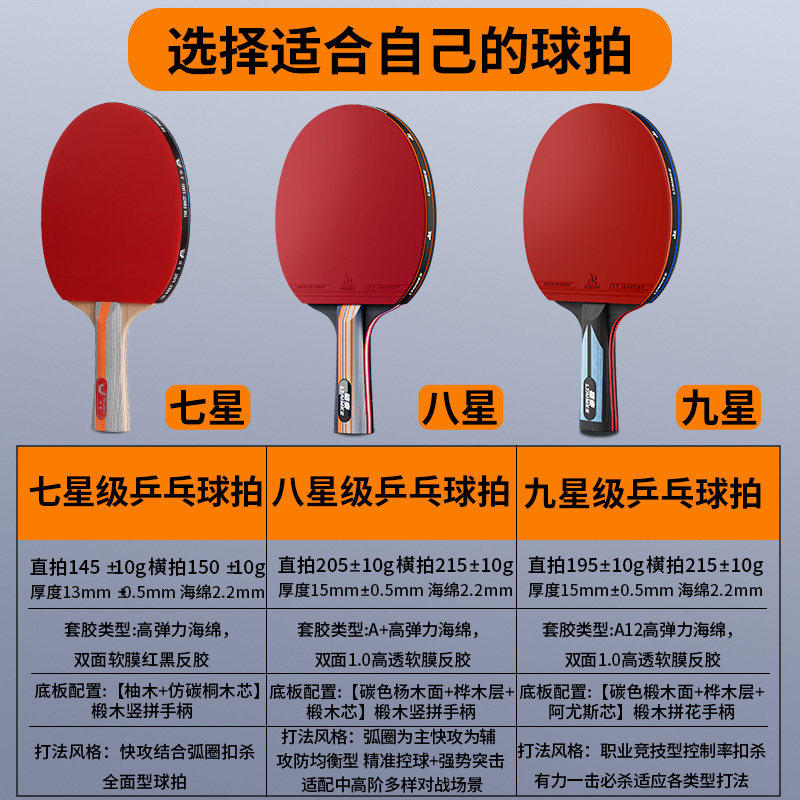 专业级乒乓球拍7星9星直拍横拍正品官方旗舰店初中小学生专用套装