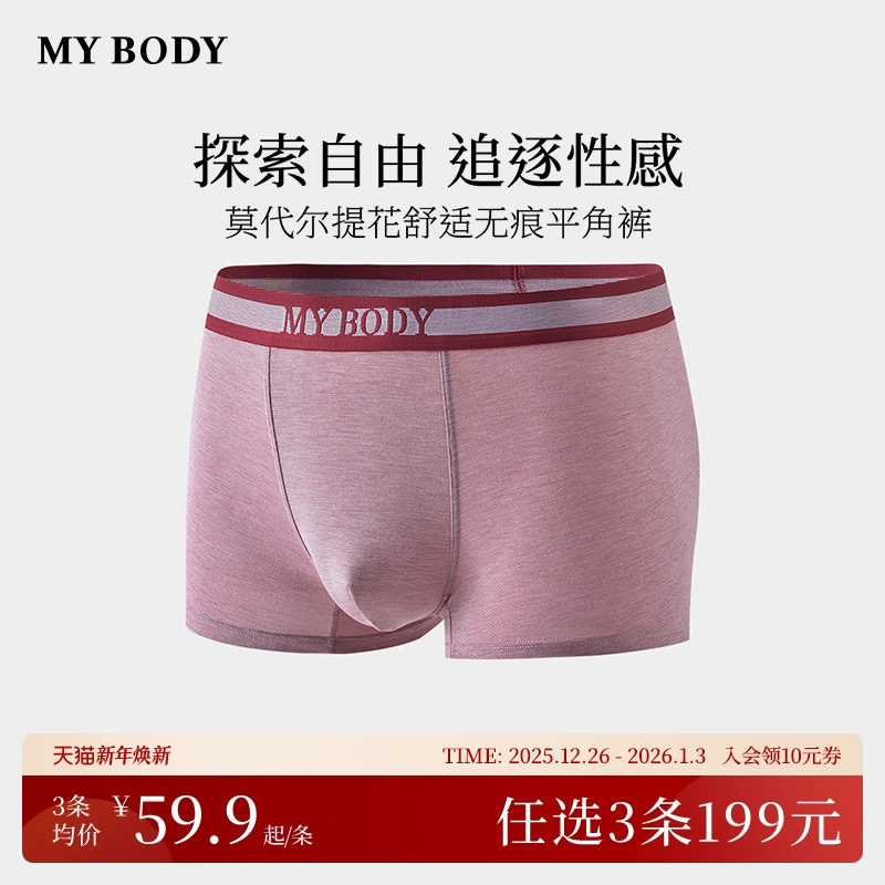 3件199|商场同款MYBODY内裤男莫代尔舒适无痕平角裤四角短裤男生