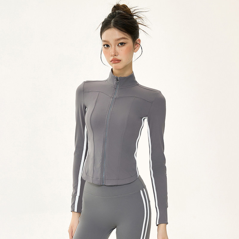 运动外套女秋季上衣复古条纹套装修身显瘦跑步训练时尚健身服大码