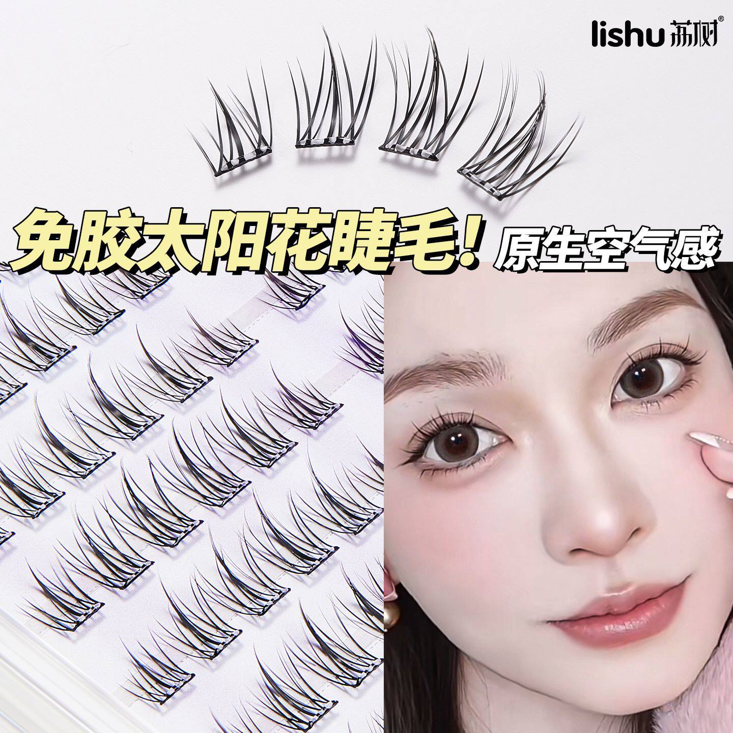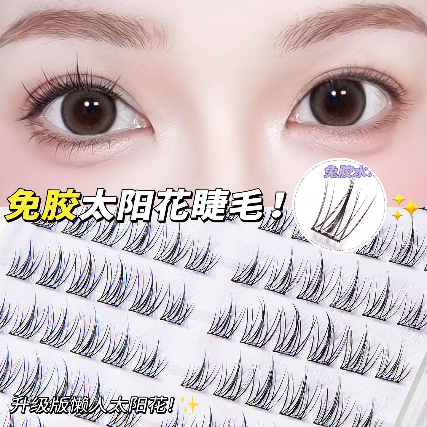荔树懒人免胶120簇太阳花睫假睫毛无需胶水分段新手自然仿真