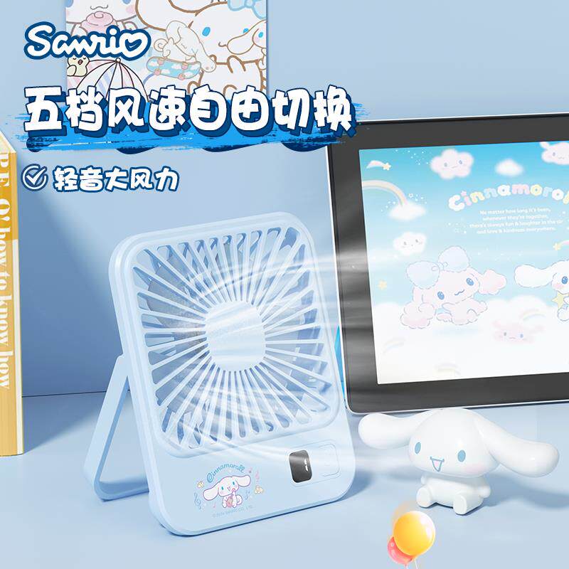 三丽鸥联名款桌面小风扇便携办公室桌usb充电风扇小型宿舍学生床上家用大风力超长续航户外降温神器2026新款