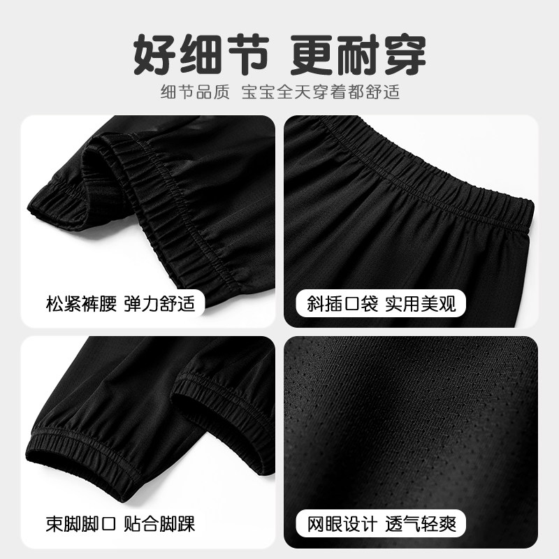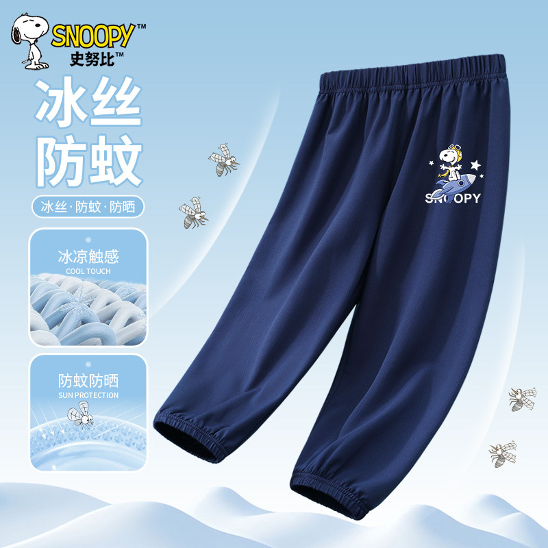 史努比童装男童夏季冰丝防蚊裤2025新款儿童速干运动长裤薄款裤子