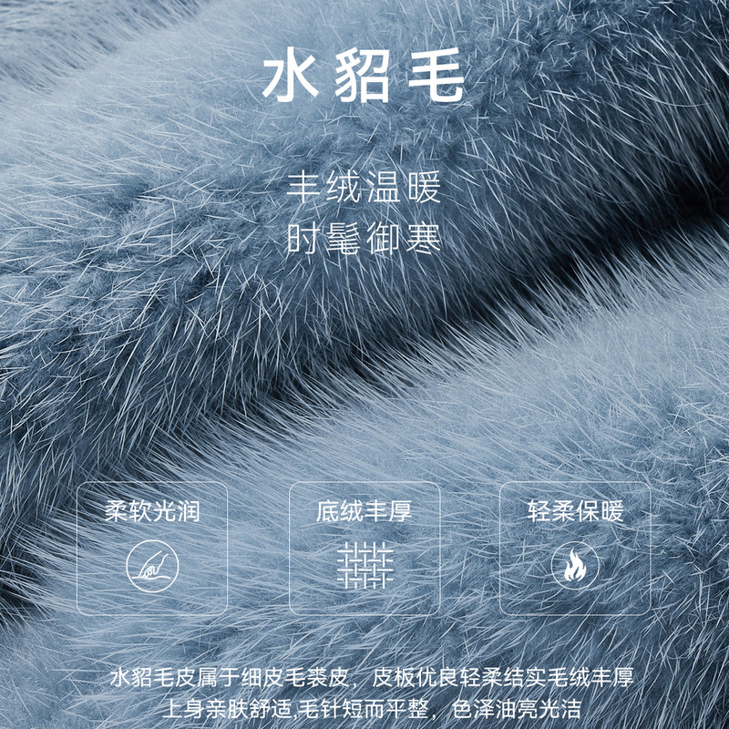 NAERSI/娜尔思高雅斜拼水貂毛皮皮草温雅袖口抽褶2025年冬季新款