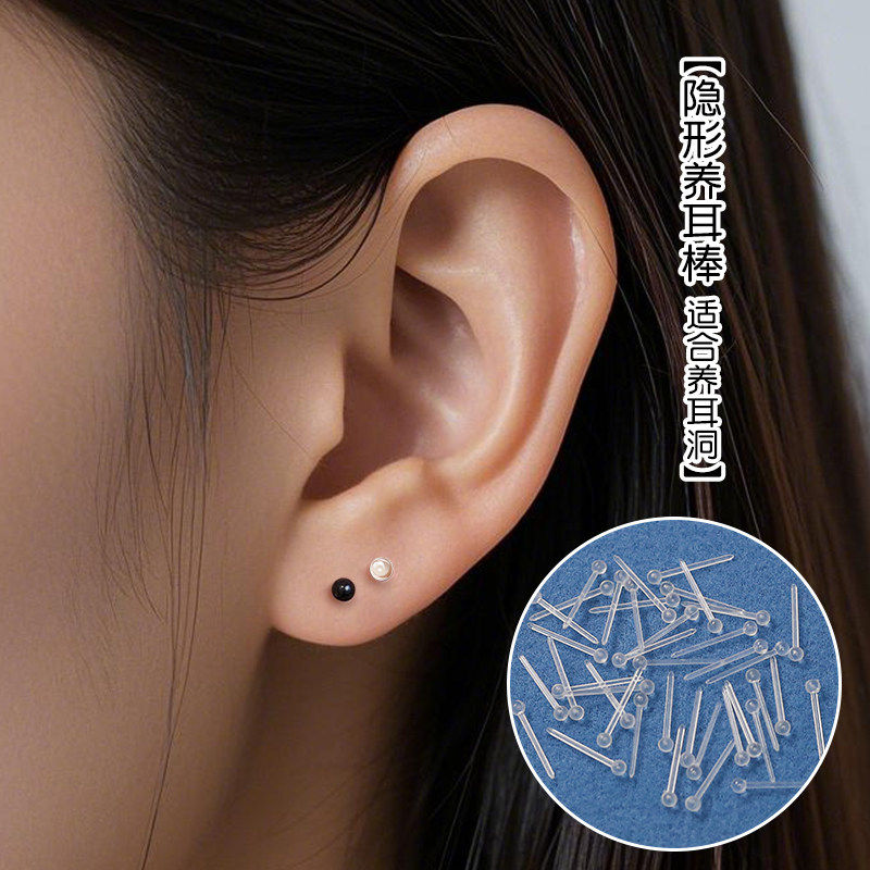 塑料耳棒防过敏养耳洞女隐形透明简约学生韩版耳钉直棍防堵针耳环