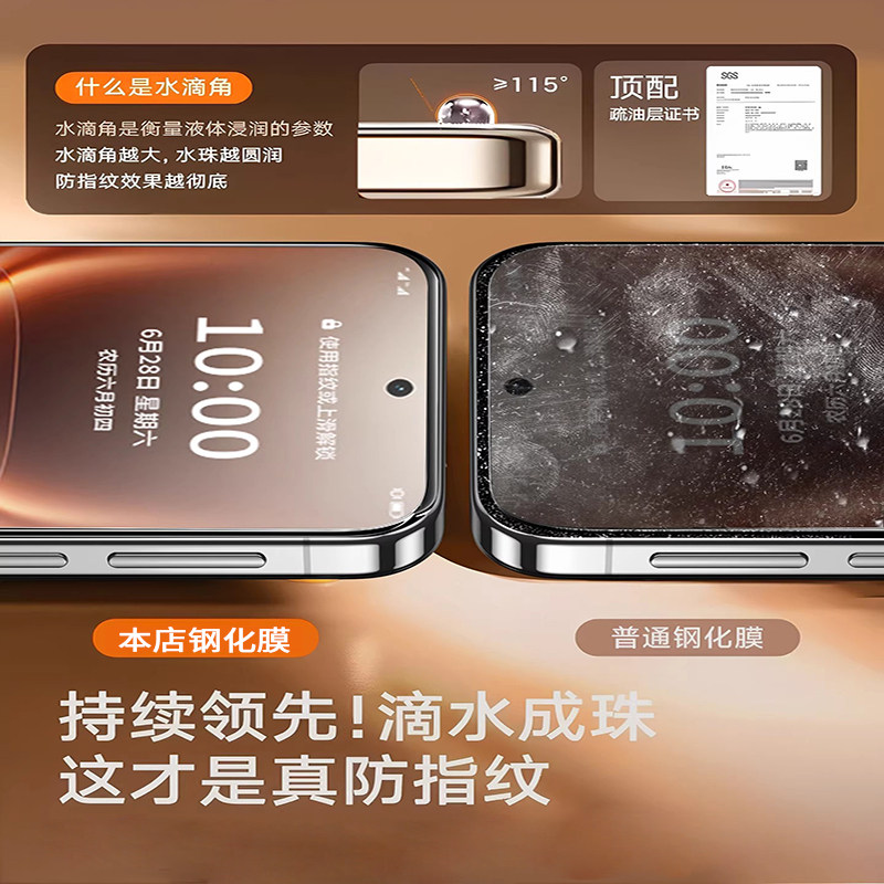 [不沾指纹]适用iPhone17/16钢化膜苹果15/14手机13promax防窥12全屏XR/xsmax全包11贴X防摔8por高清plus