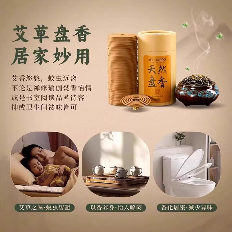 檀香家用沉香盘香艾草驱蚊卧室内持久熏香卫生间厕所除臭去味香薰