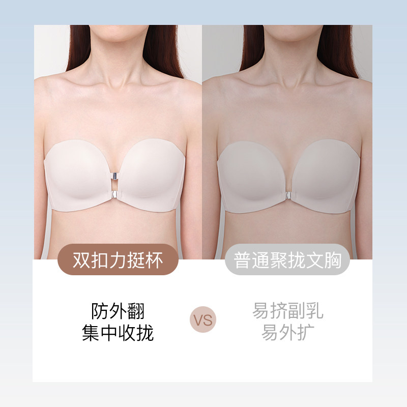 菇娘家稳稳杯无肩带内衣女大胸美背抹胸裹胸隐形无痕聚拢防滑文胸
