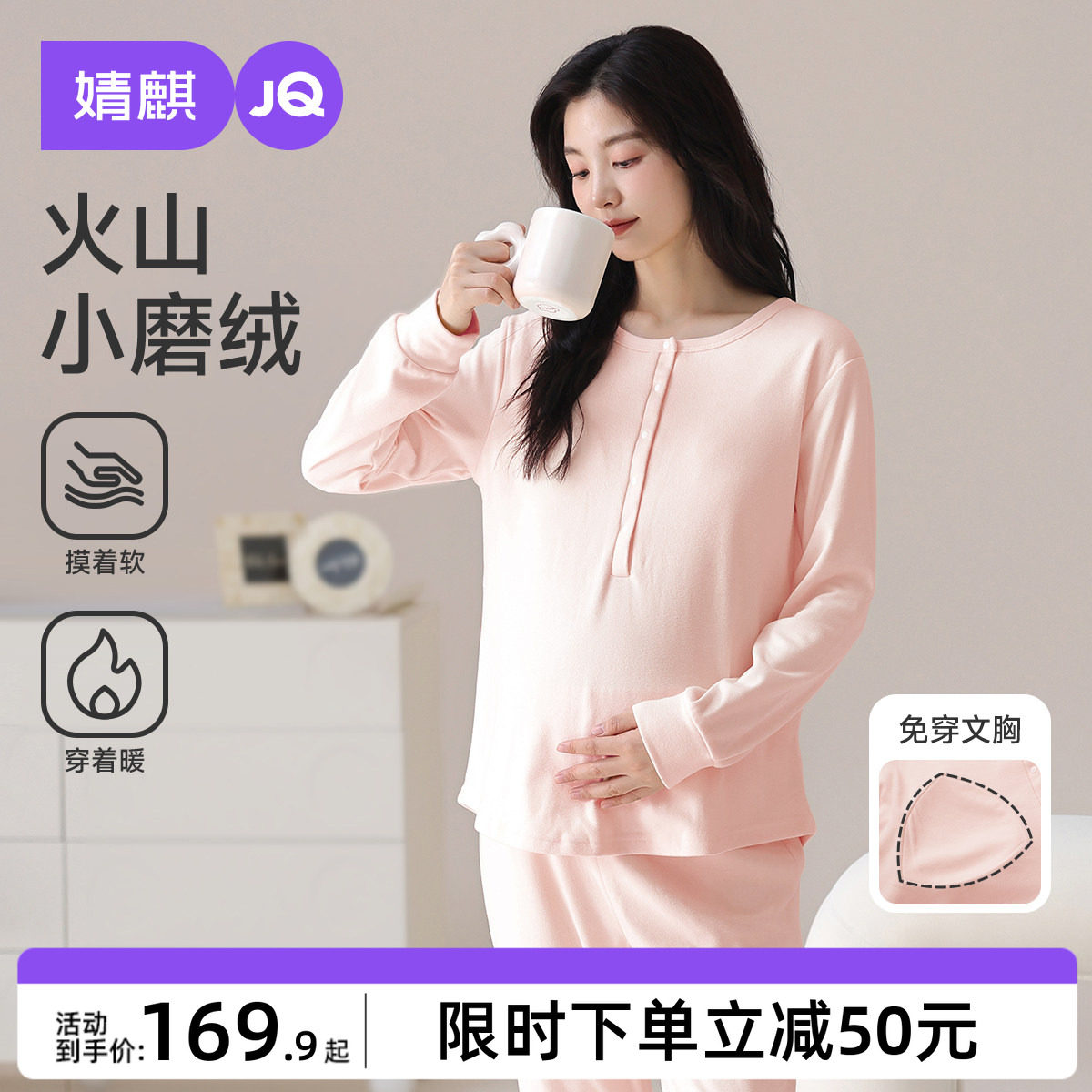 婧麒带胸垫月子服孕妇冬产后哺乳睡衣女怀孕期产妇喂奶磨绒家居服