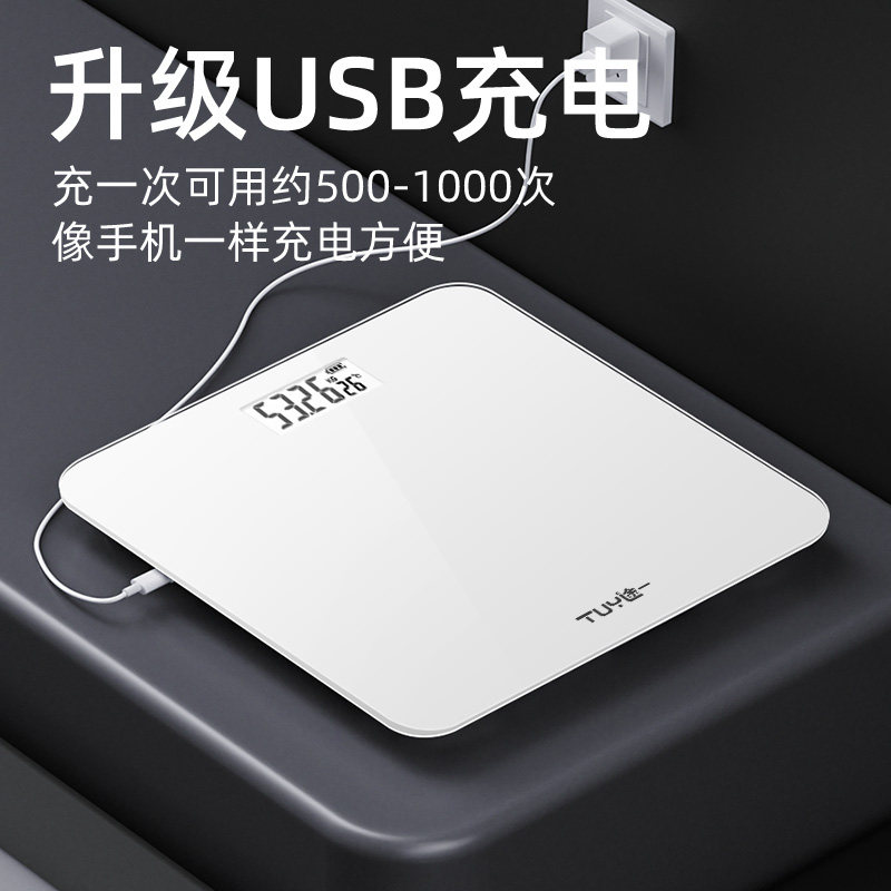 电子秤体重秤家用精准小型家庭人体称充电女生宿舍钢化玻璃秤面板