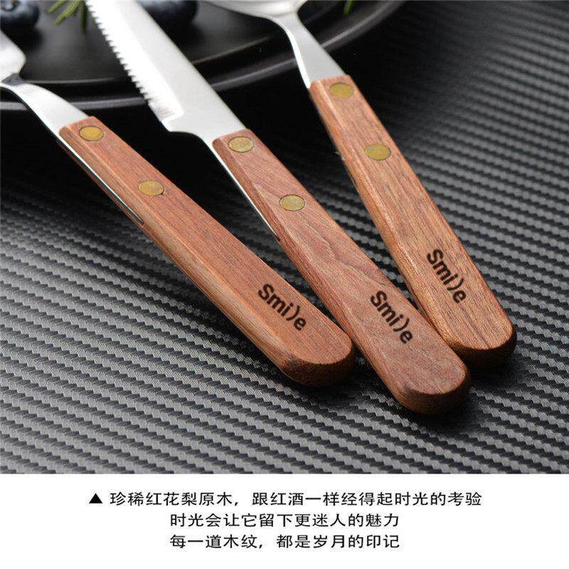 花梨木柄勺子食品级不锈钢家用高档精致吃饭汤匙调羹长柄叉子汤勺