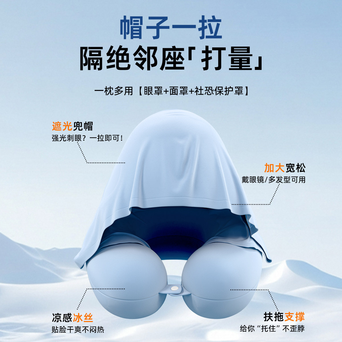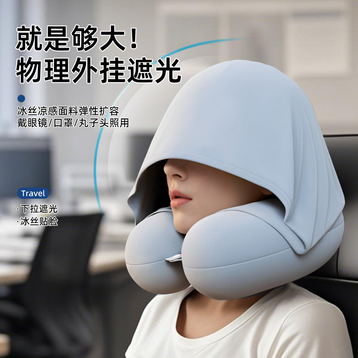 冰丝连帽u型枕护颈枕飞机高铁便携u形枕长途坐车睡觉神器颈椎脖枕