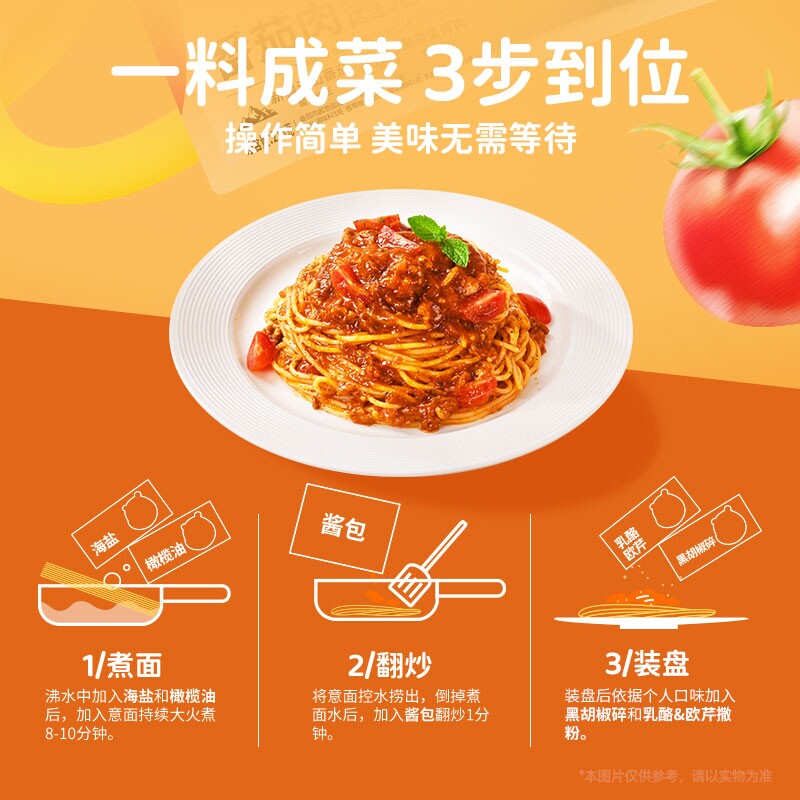锋味派意大利面官方旗舰店番茄肉酱儿童速食意面家用早餐意粉面条