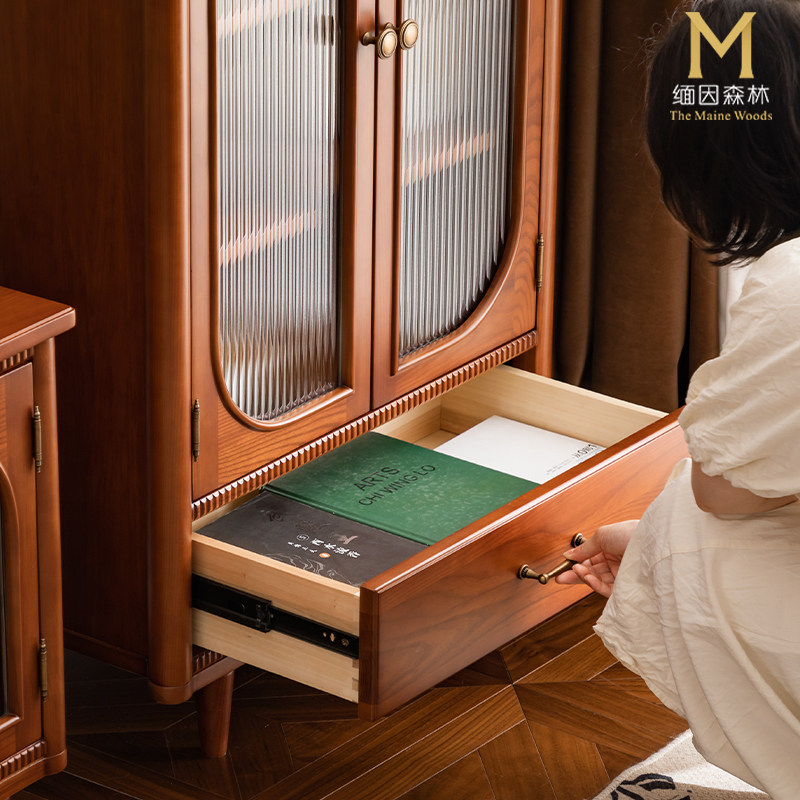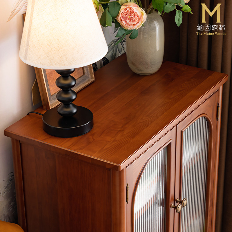 实木边柜法式复古餐边柜客厅全实木置物柜靠墙中古收纳柜展示柜
