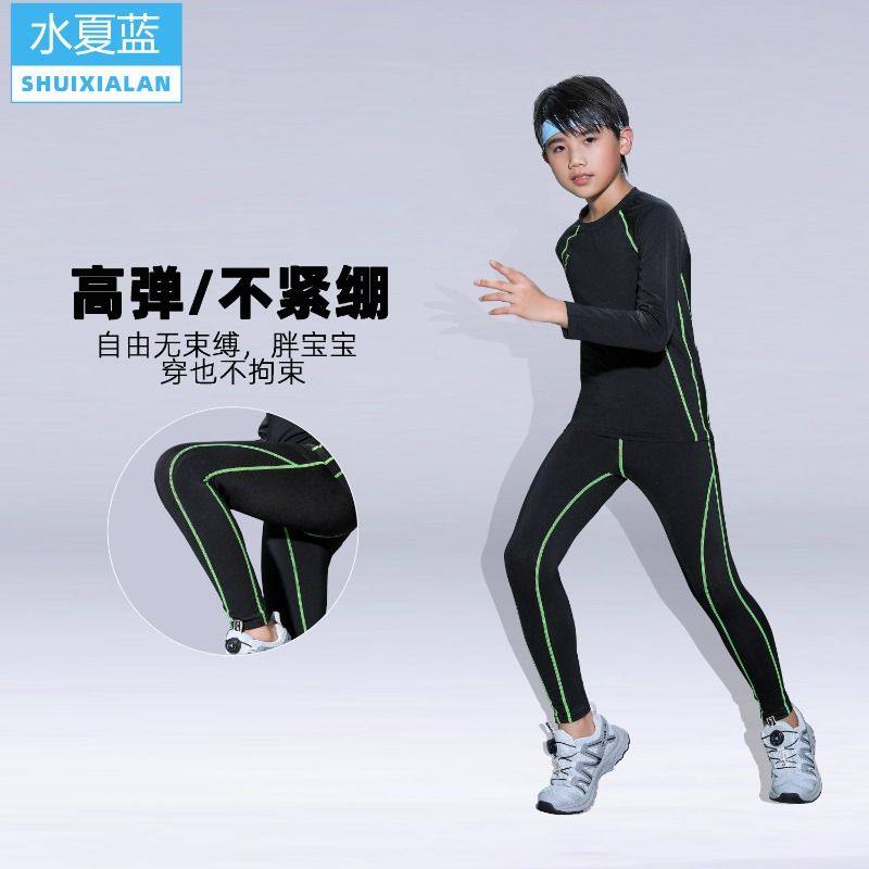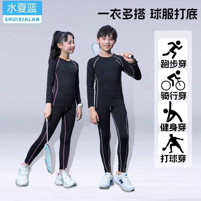 水夏蓝儿童篮球服训练服女童足球服秋冬打底紧身衣速干衣运动套装