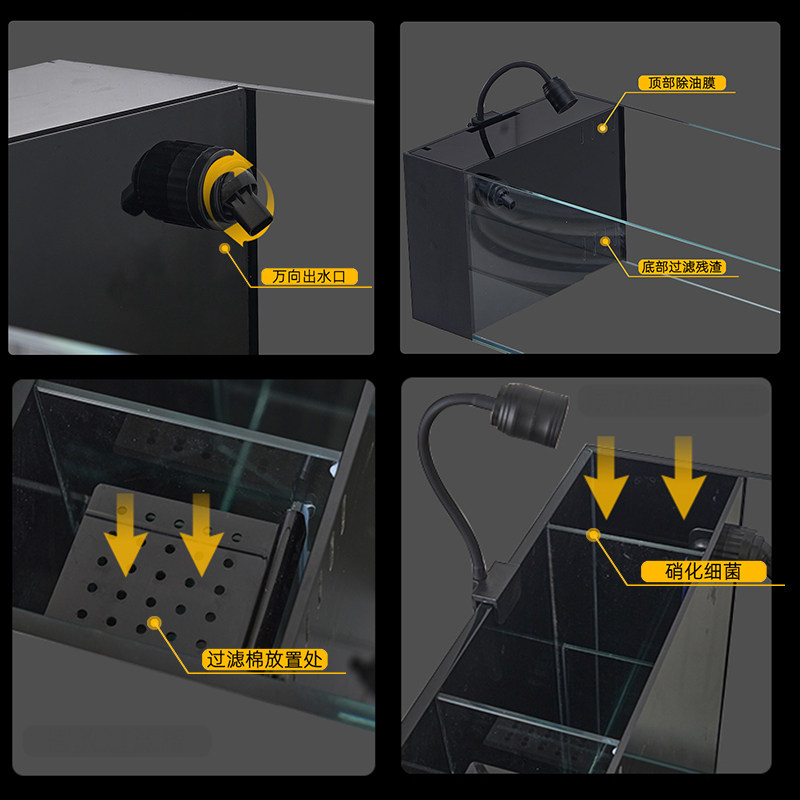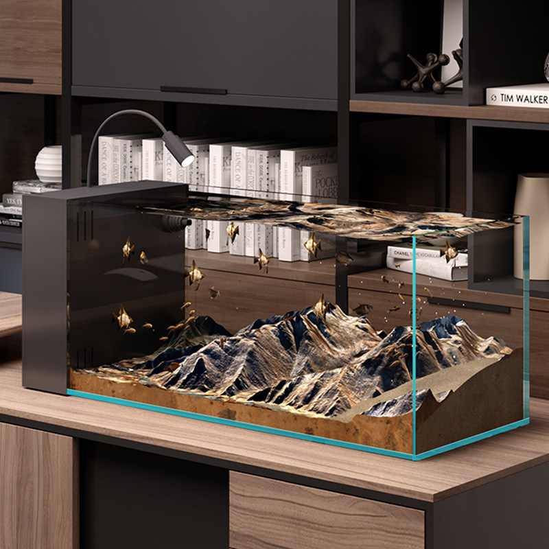 鱼缸溪流缸客厅桌面侧滤一体成型造景过滤制氧侧过滤生态金鱼缸