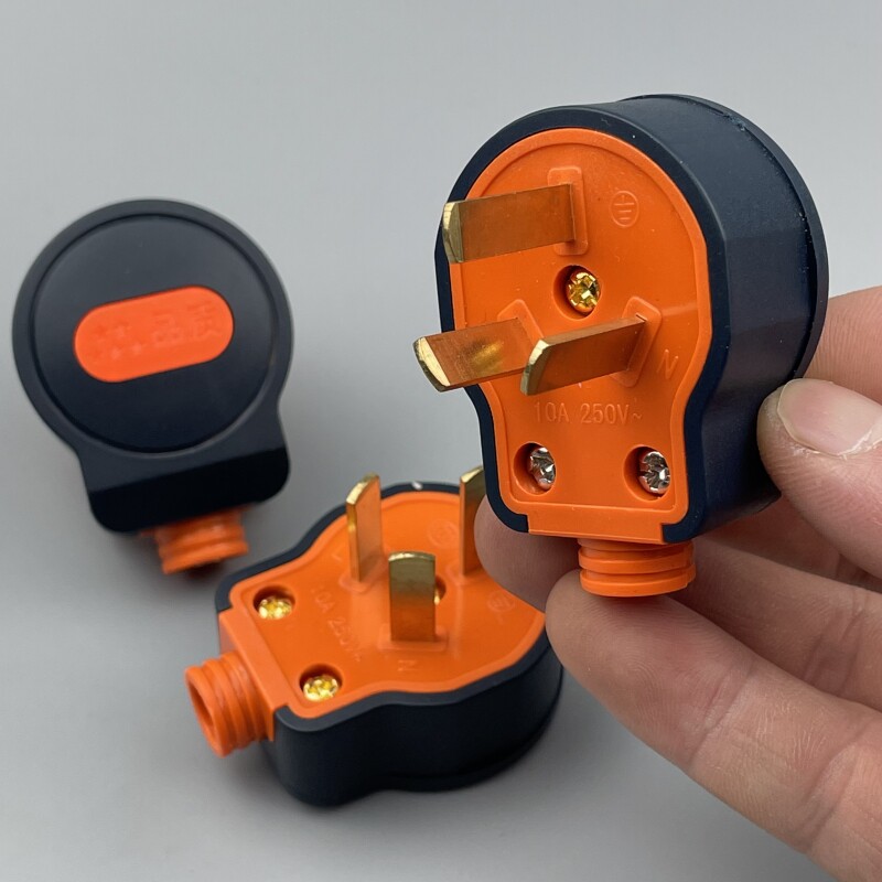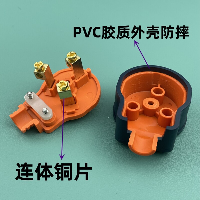 大功率10A三插头三极加厚一体铜插销单相二脚三脚3脚电源插头工程