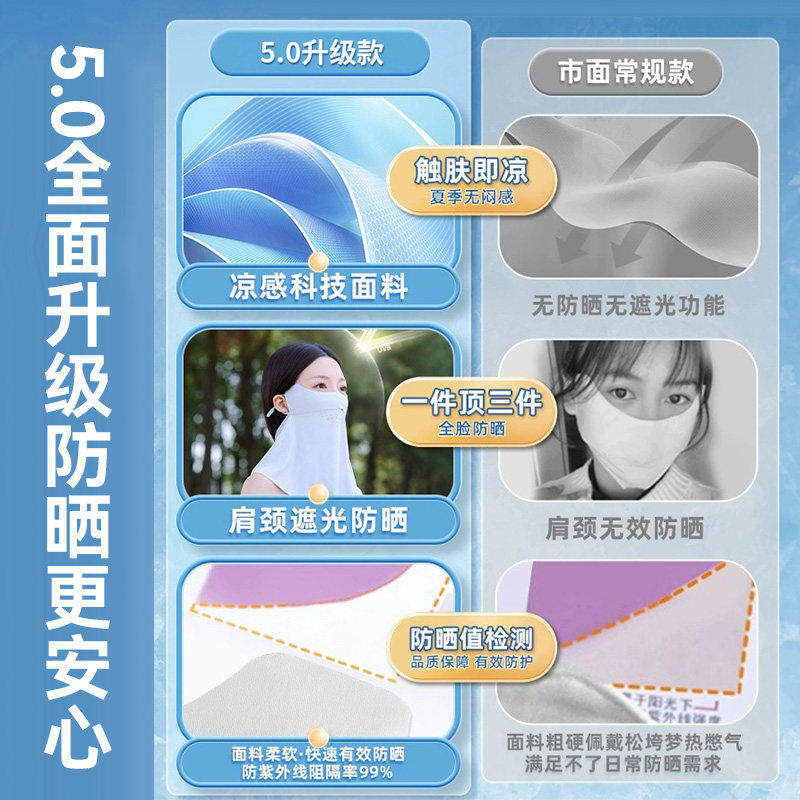 无痕防晒面罩女防紫外线全脸口罩医美脸罩夏季骑行防晒显瘦脸基尼