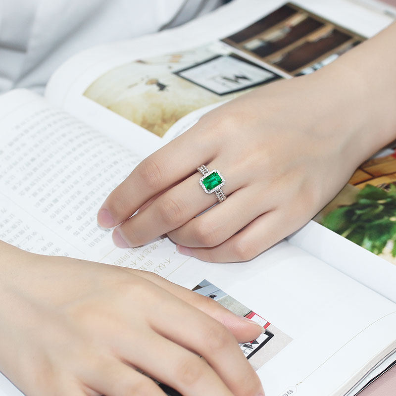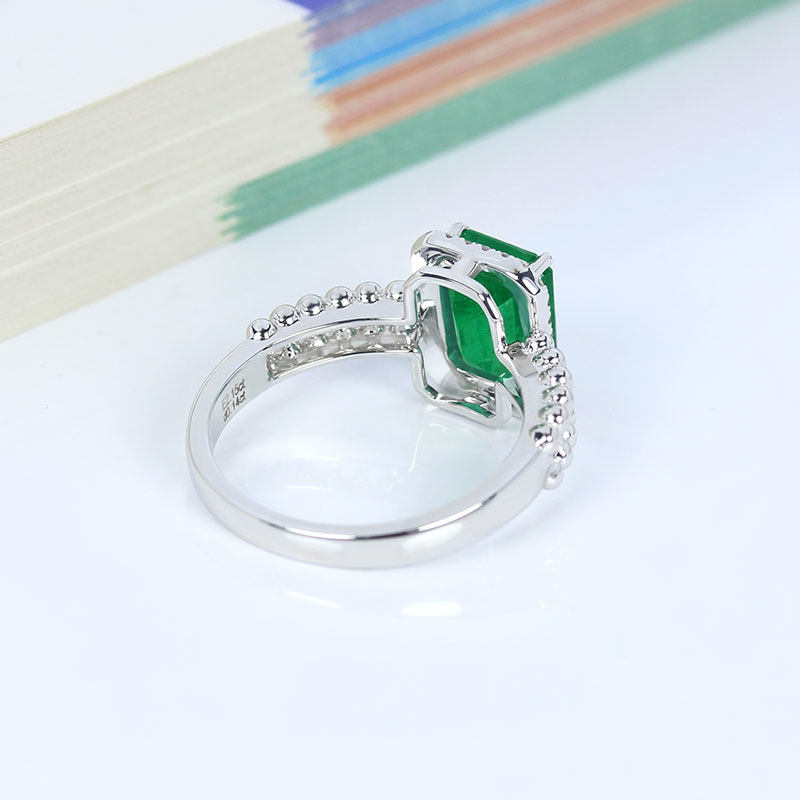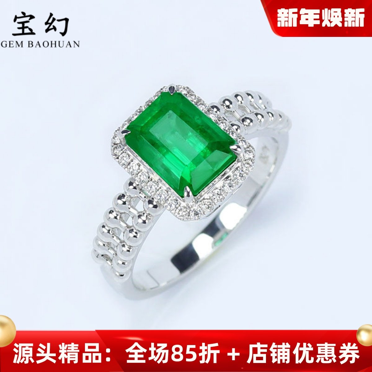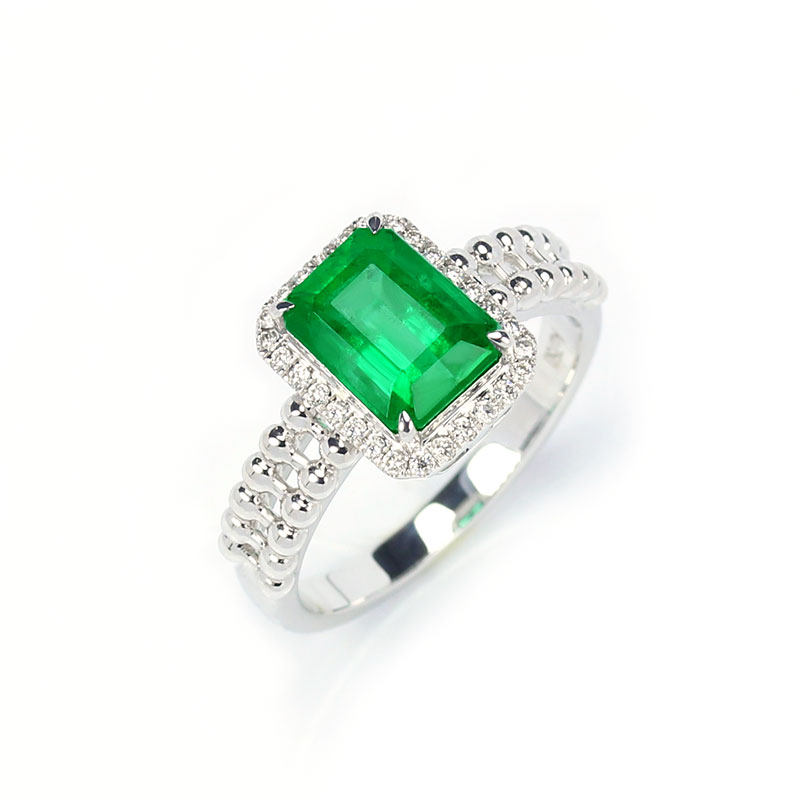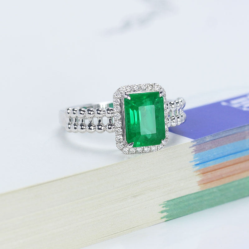 2克拉18K白金赞比亚天然祖母绿大戒指 VVG绿色宝石钻石手饰双证书
