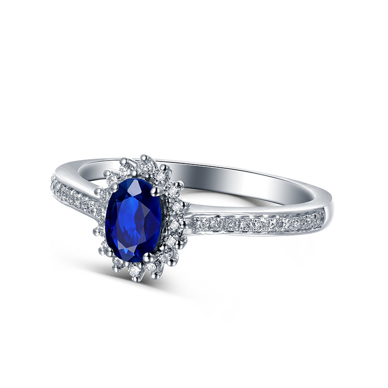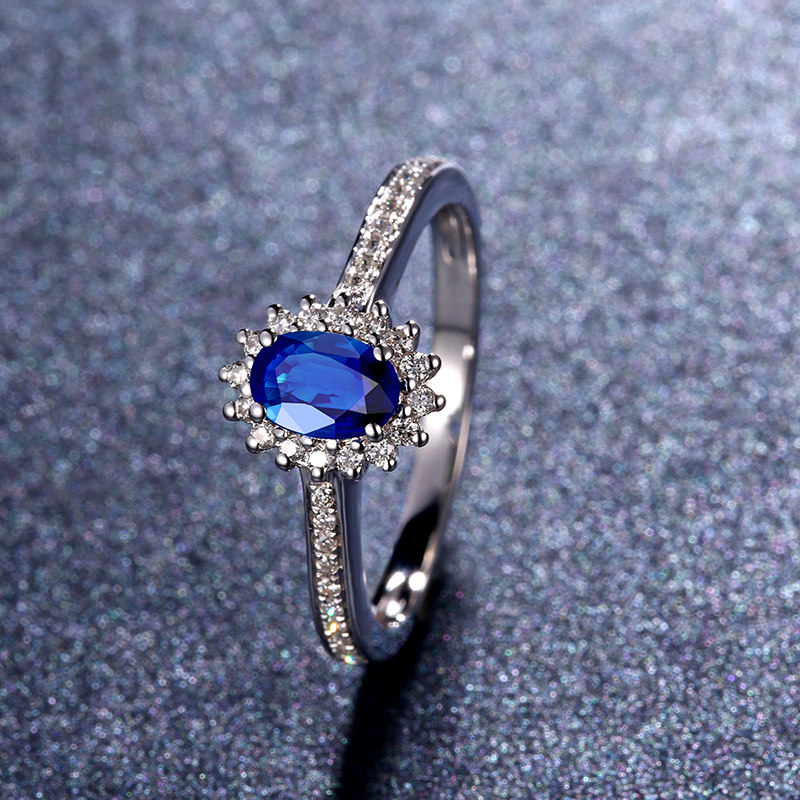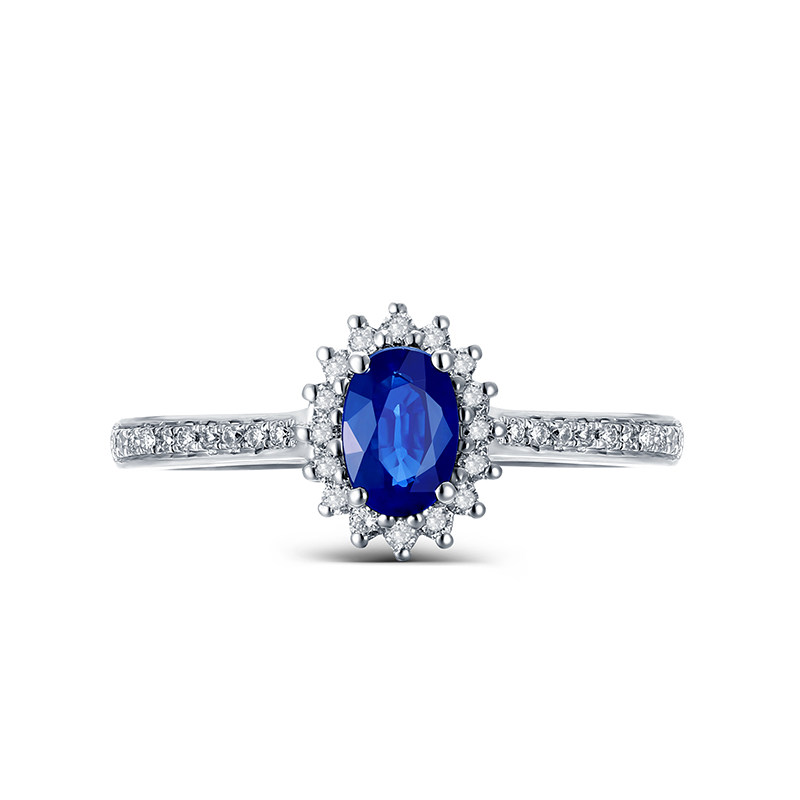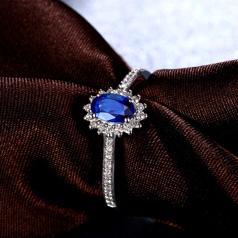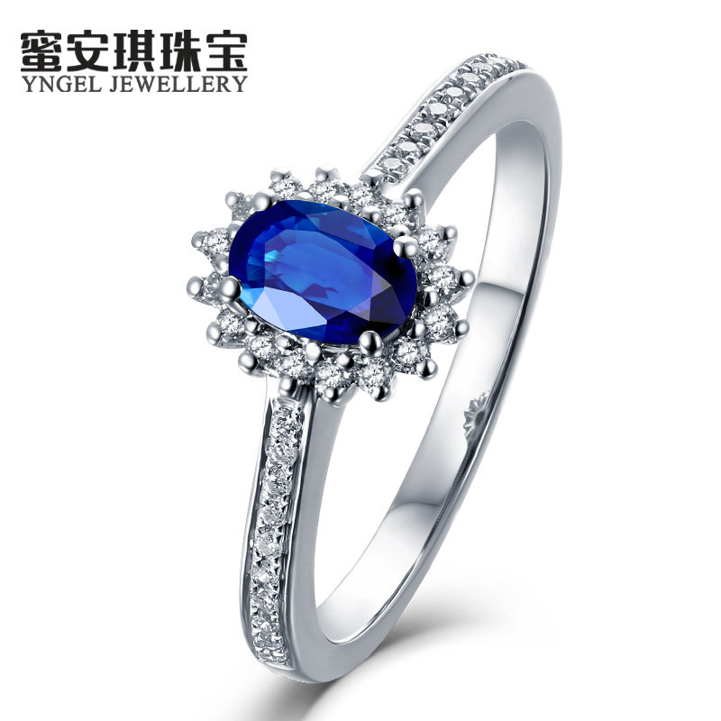 蜜安琪 戴妃款1.7克拉天然坦桑石戒指女 18k金镶嵌钻 彩宝石定制