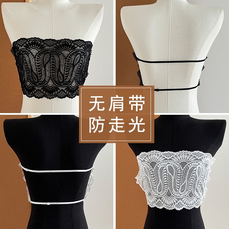 美泊姿低领遮胸布内搭夏薄无肩带蕾丝抹胸露背防走光裹胸美背透气