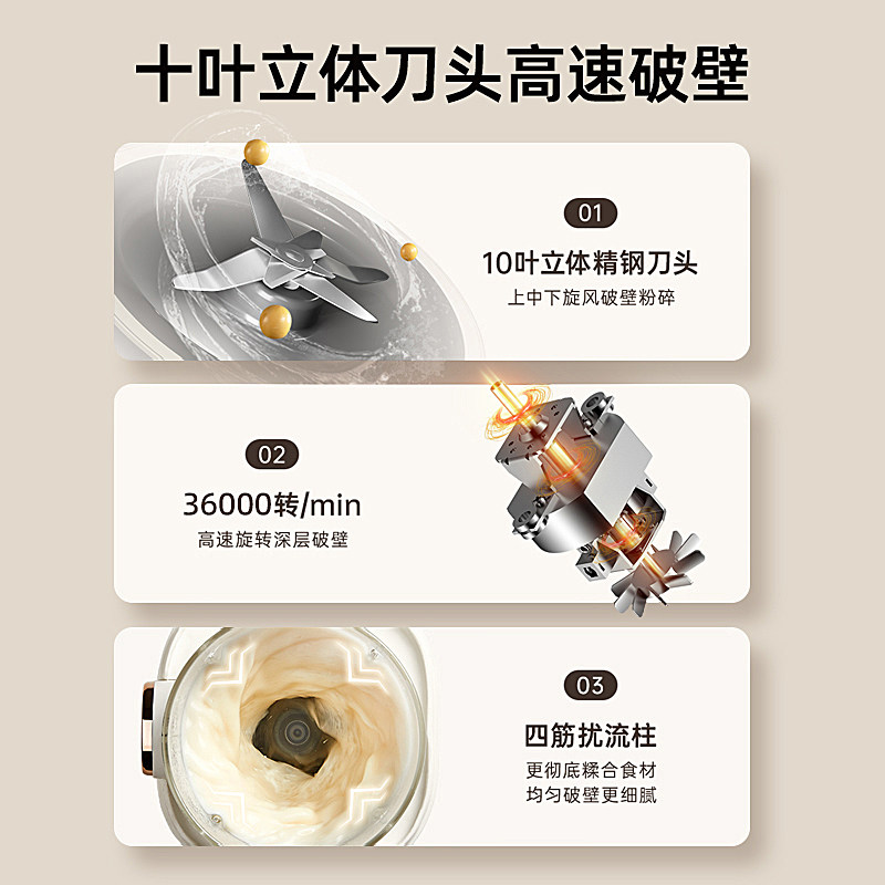 德国品质静音豆浆机家用小型多功能全自动加热免过滤破壁机果汁机
