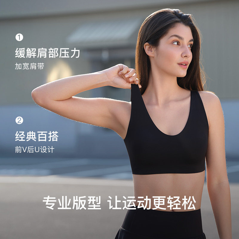 ubras2025新款V领宽肩带运动背心文胸防震跑步训练瑜伽健身内衣女
