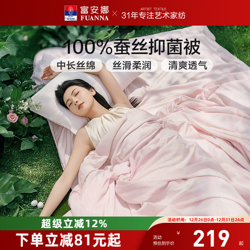富安娜100蚕丝被冬被结婚二合一被空调被芯子母学生儿童四季被子