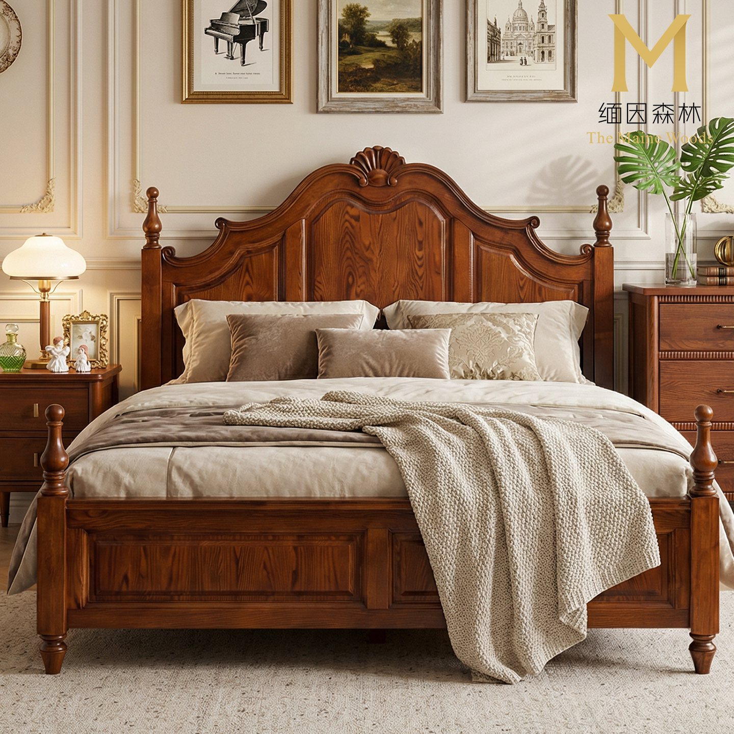 复古风格主卧大床中古纯实木床卧室婚床1.8m双人床白蜡木政府补贴