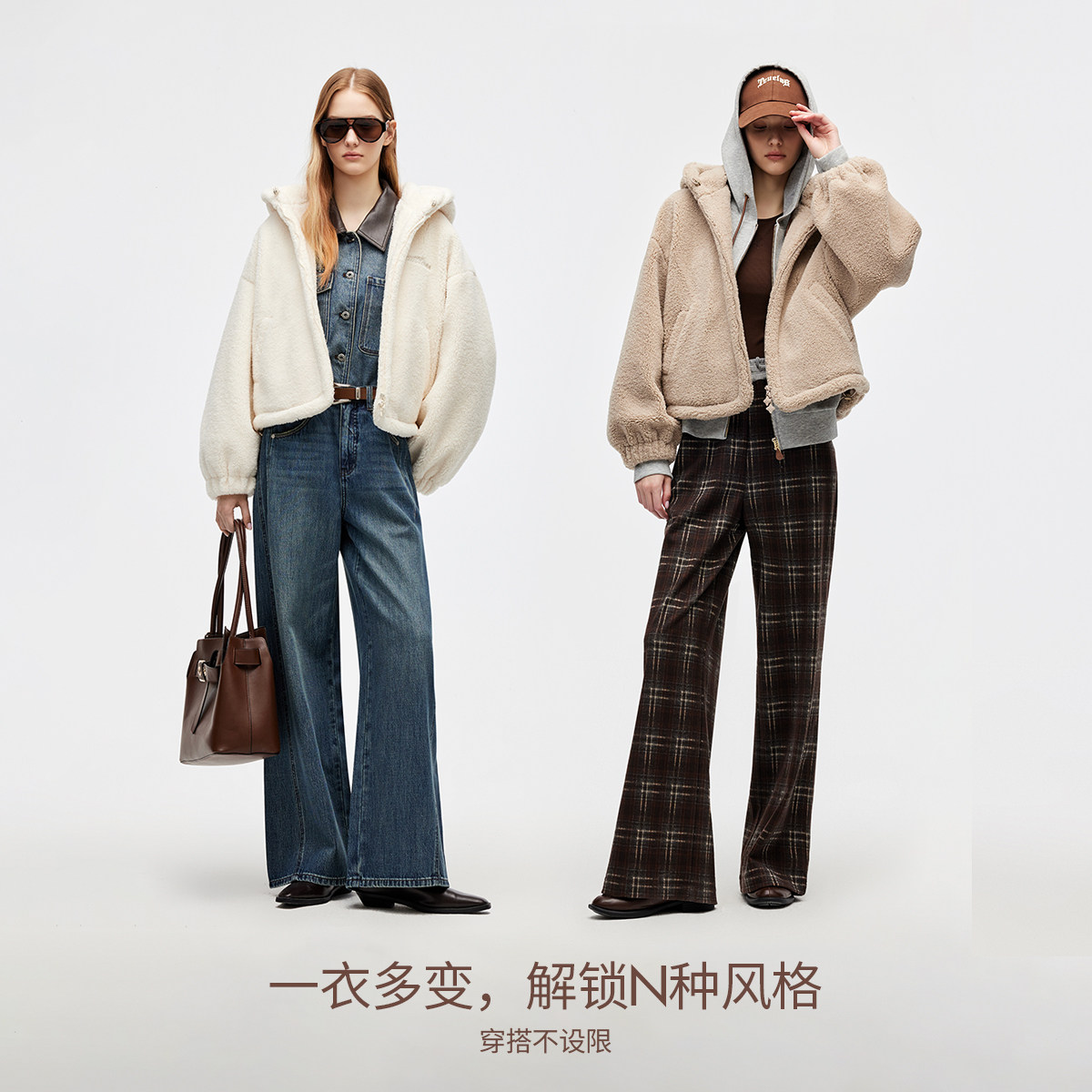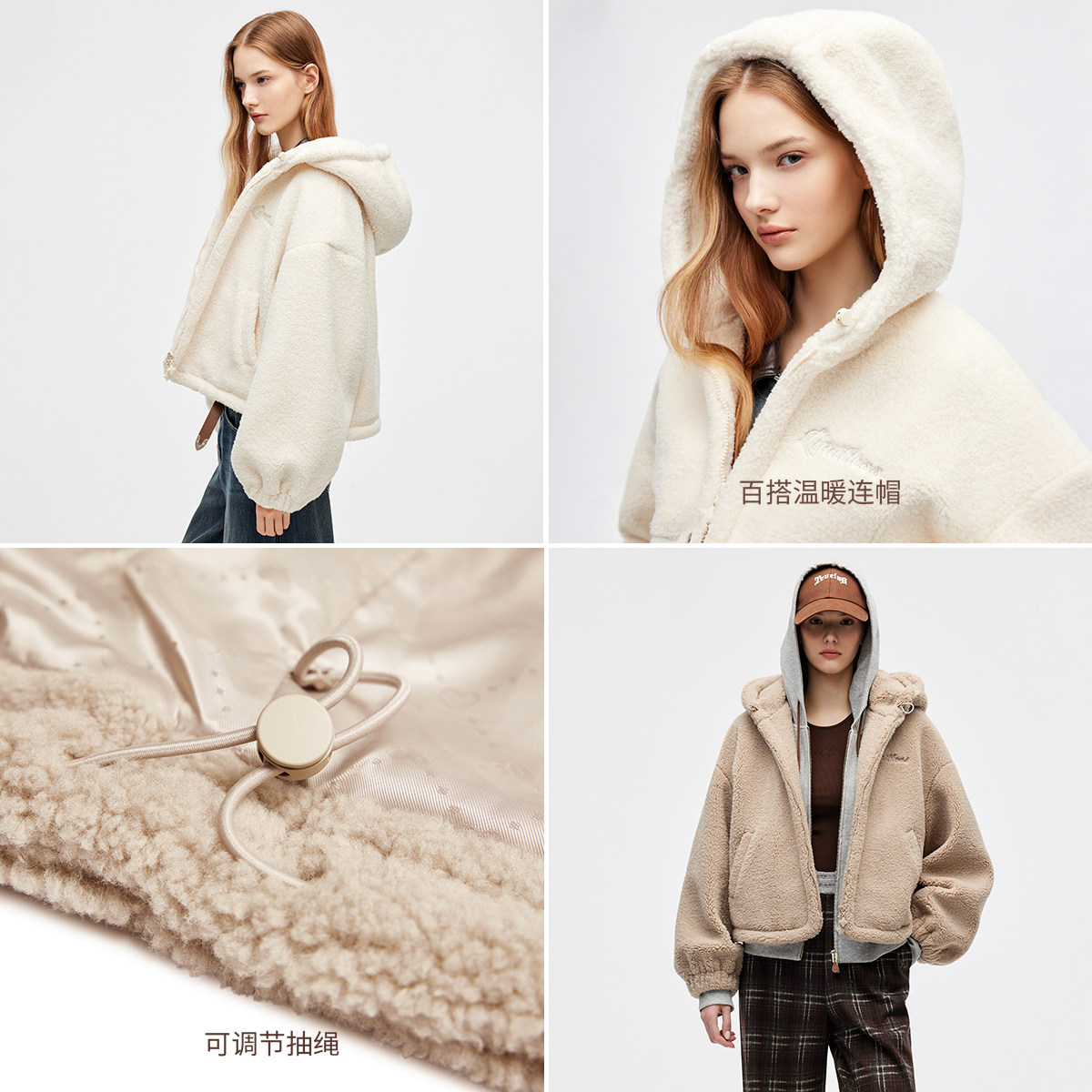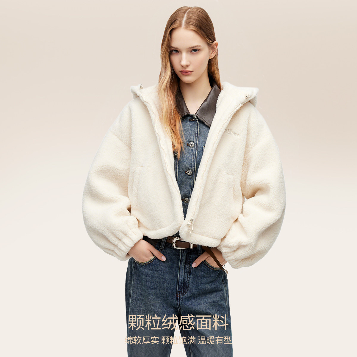 【ONLY奥莱】春季运动风短款俏皮毛绒连帽宽松保暖厚外套棉服女