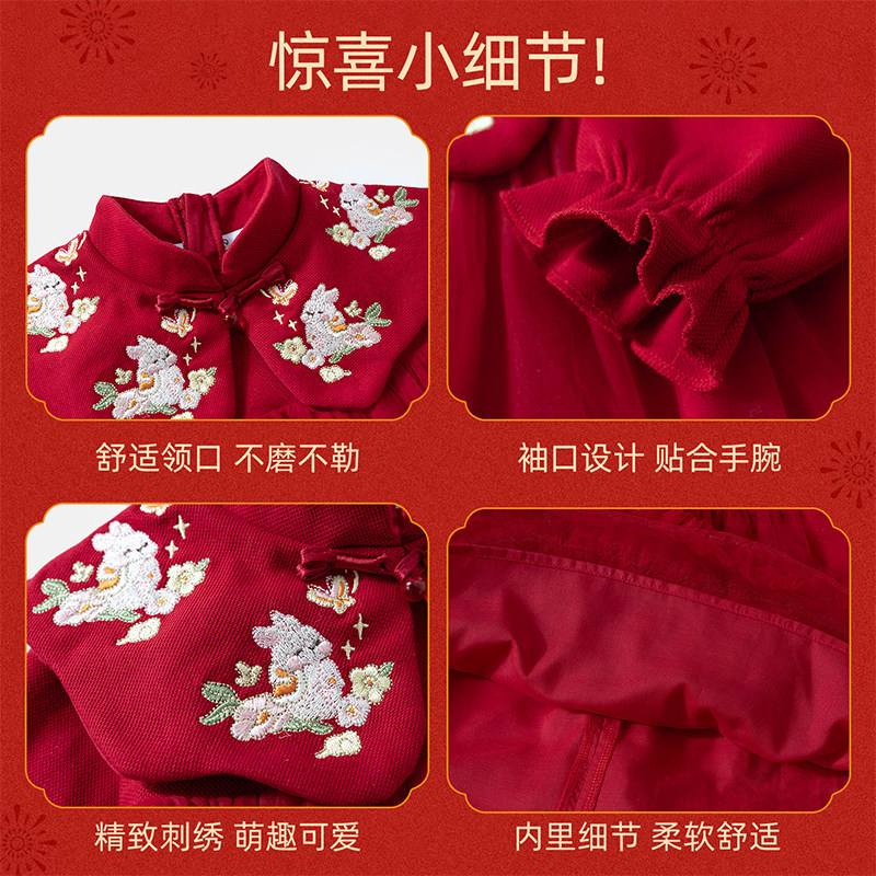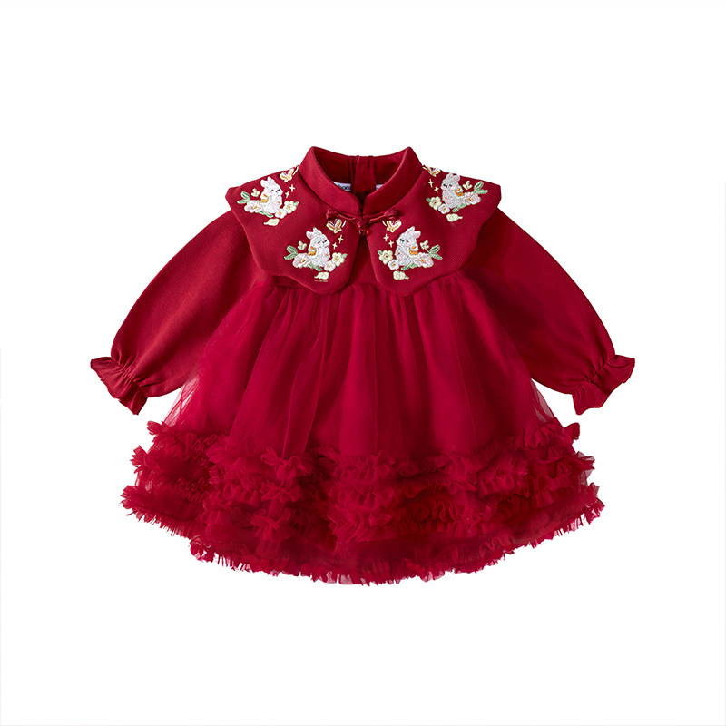 班喜迪女童连衣裙春装新中式宝宝公主裙周岁礼服儿童蓬蓬裙拜年服