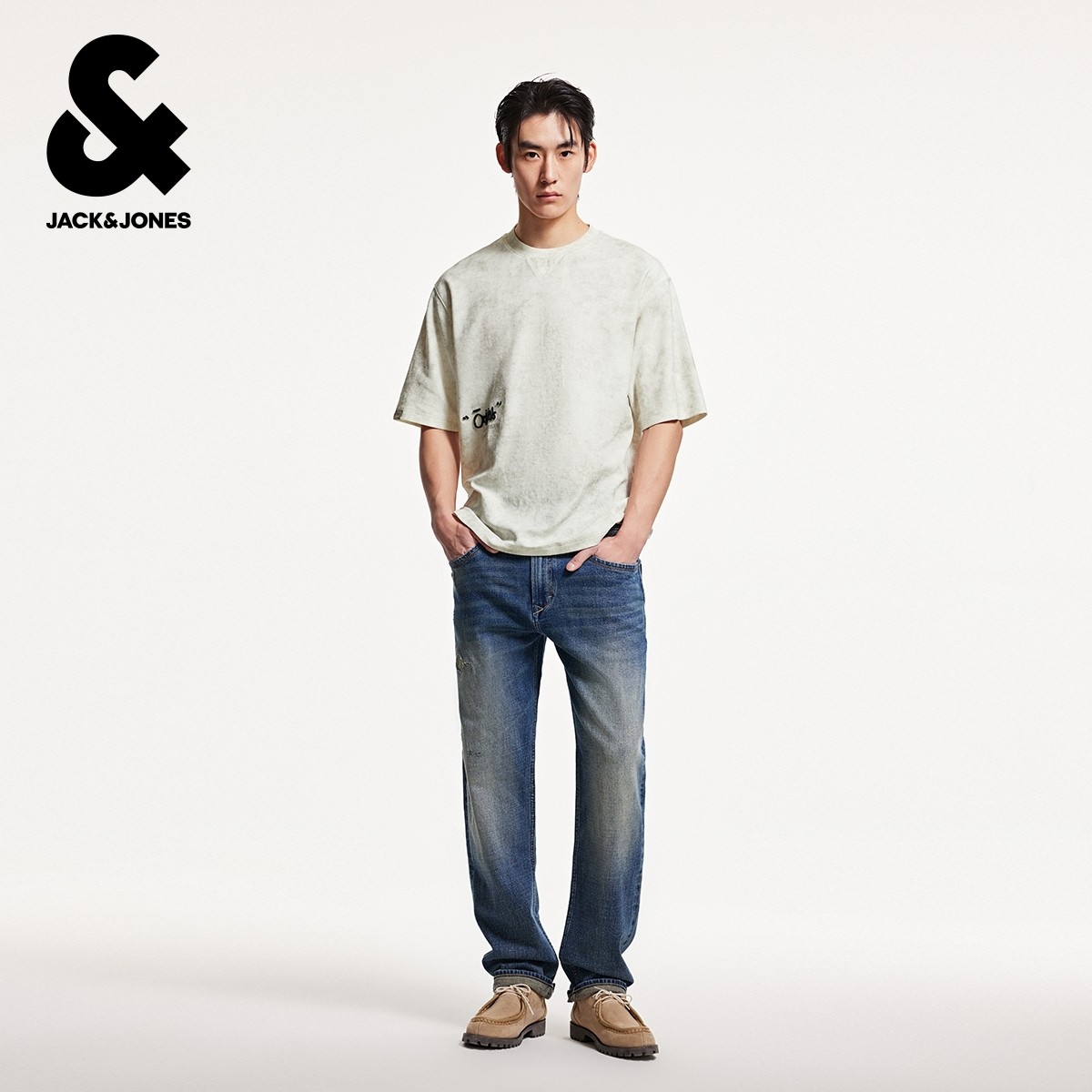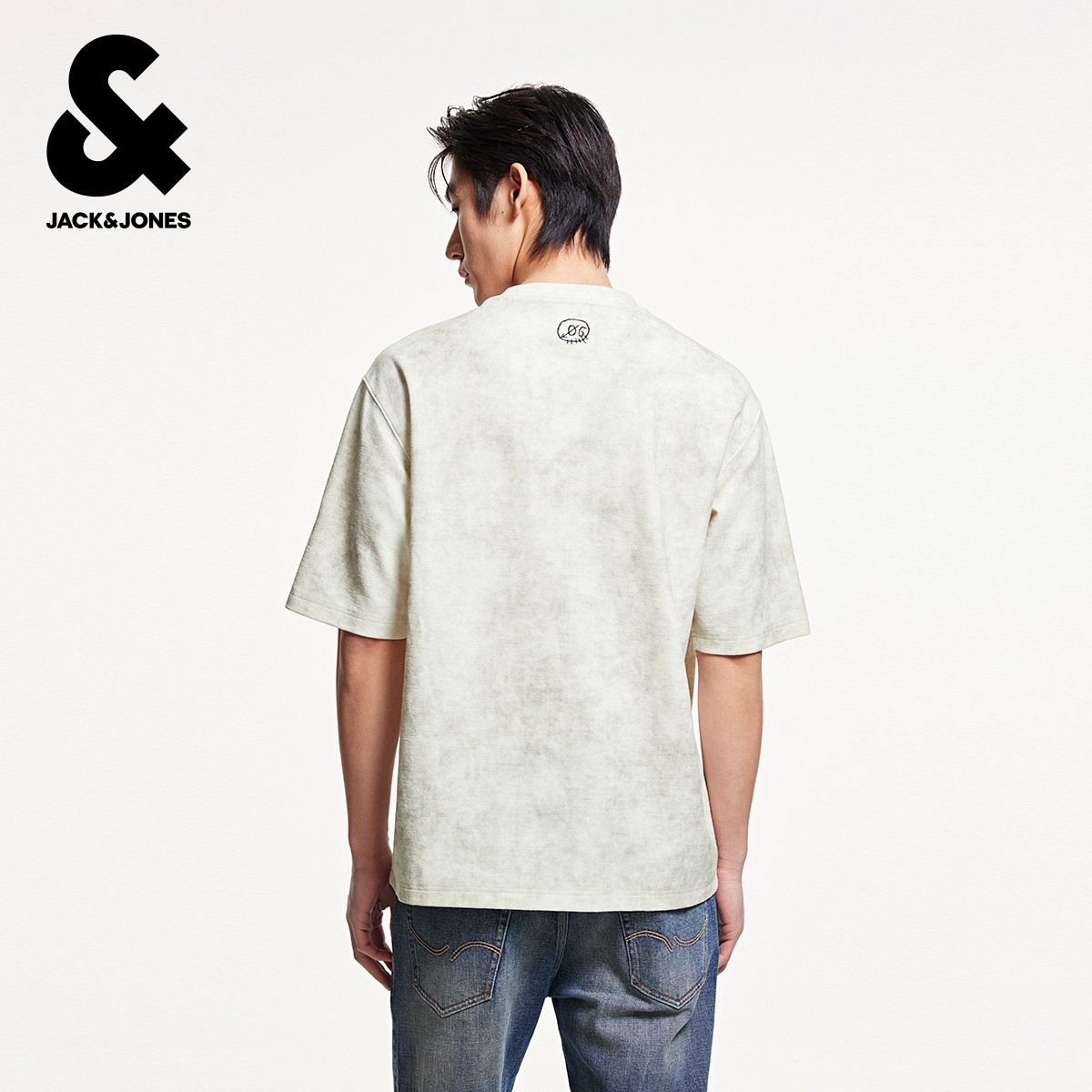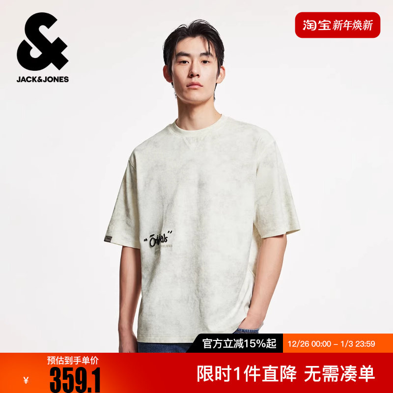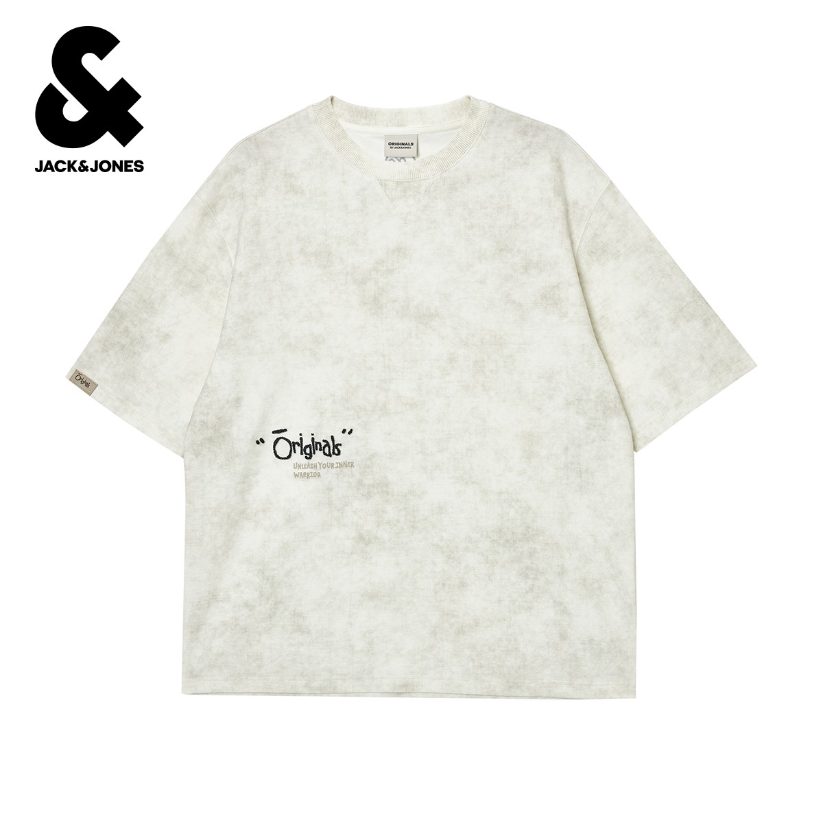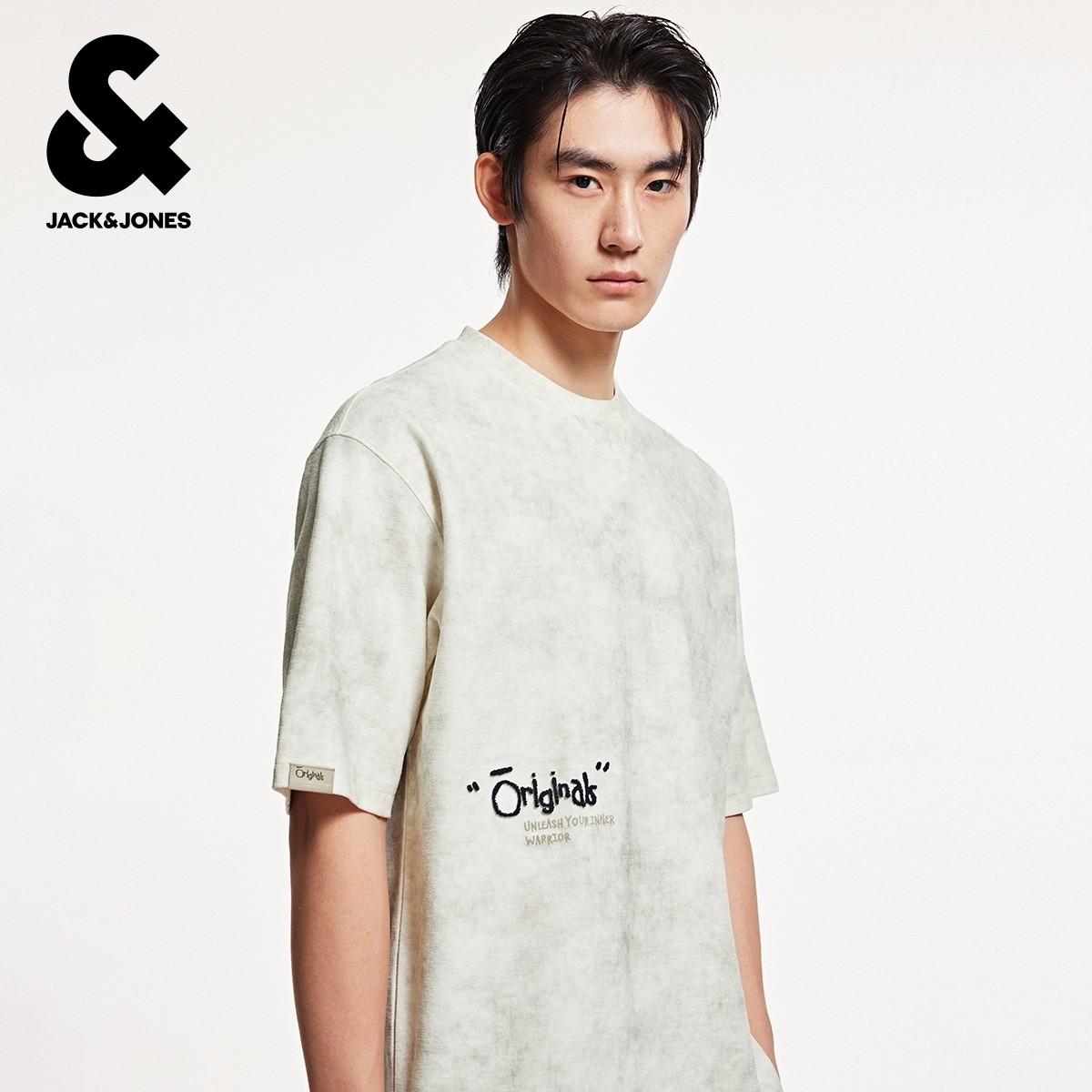 杰克琼斯冬季时尚百搭休闲宽松版型字母扎染设计短袖T恤上衣男装