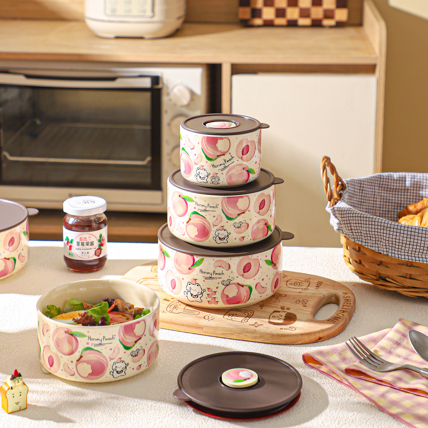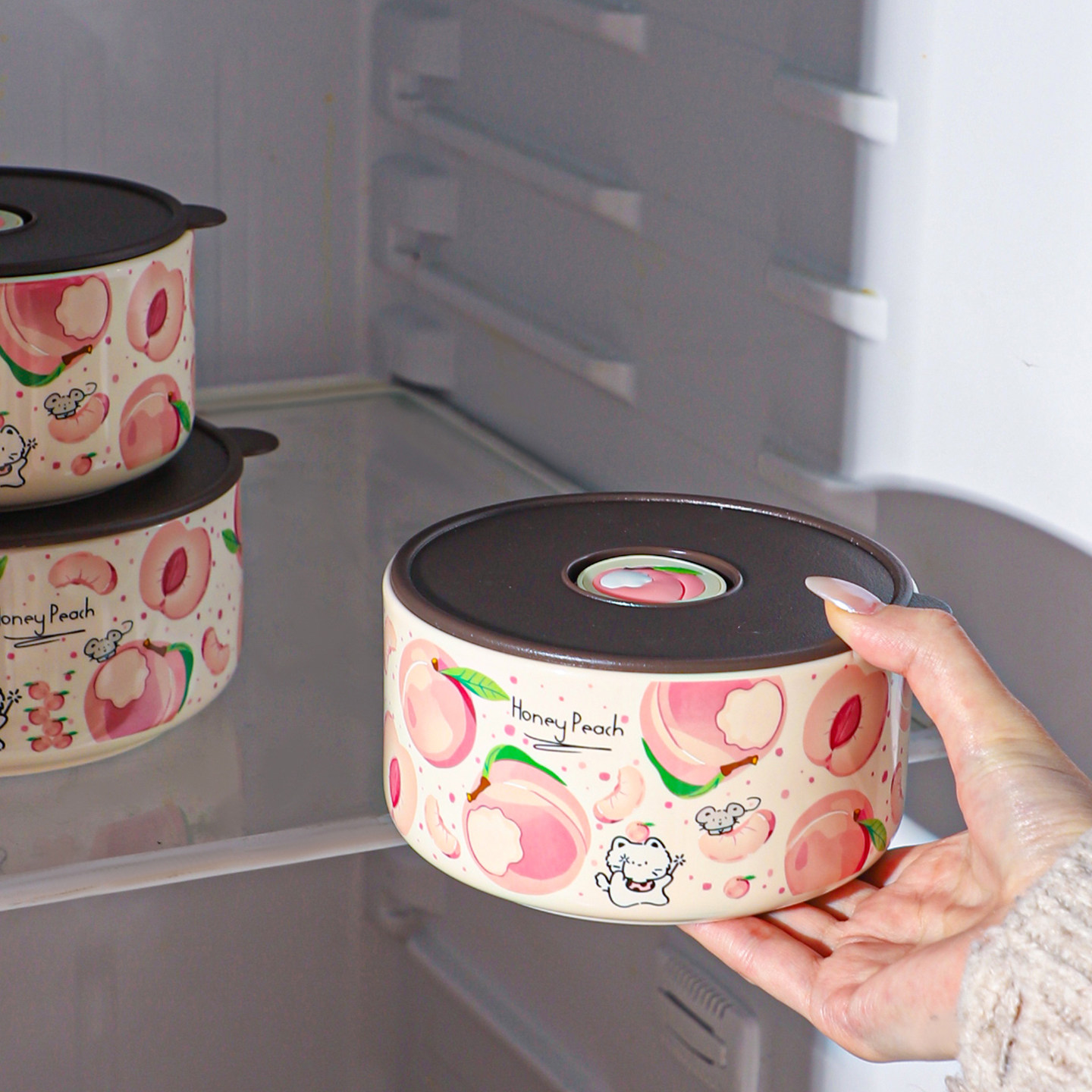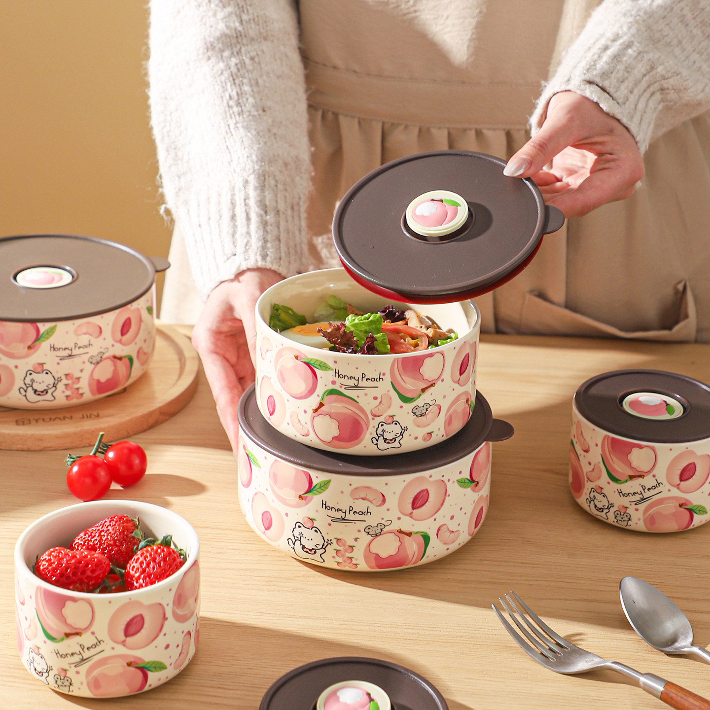 舍里可爱卡通保鲜碗带盖密封便当盒上班族学生可微波炉加热饭盒