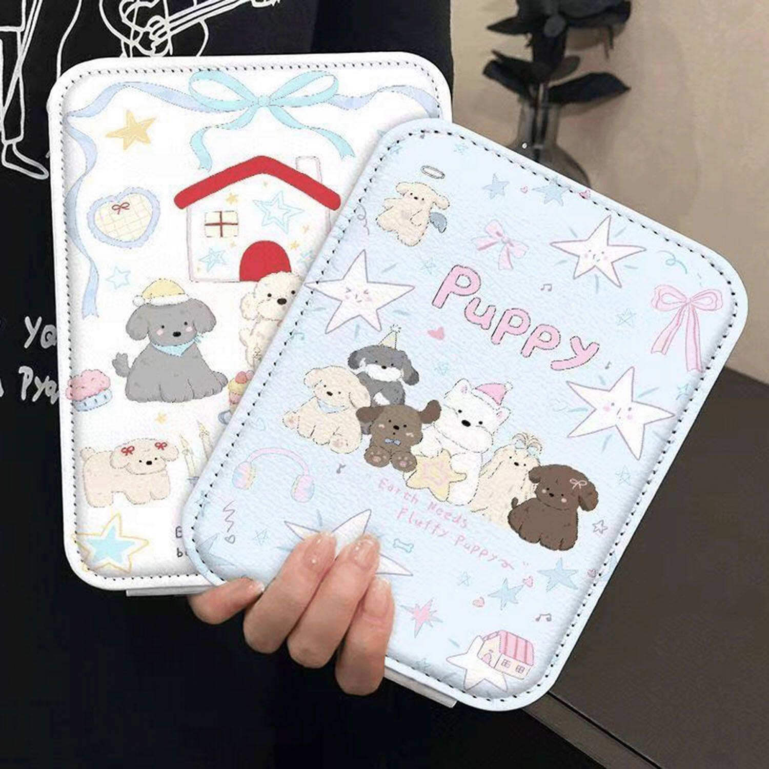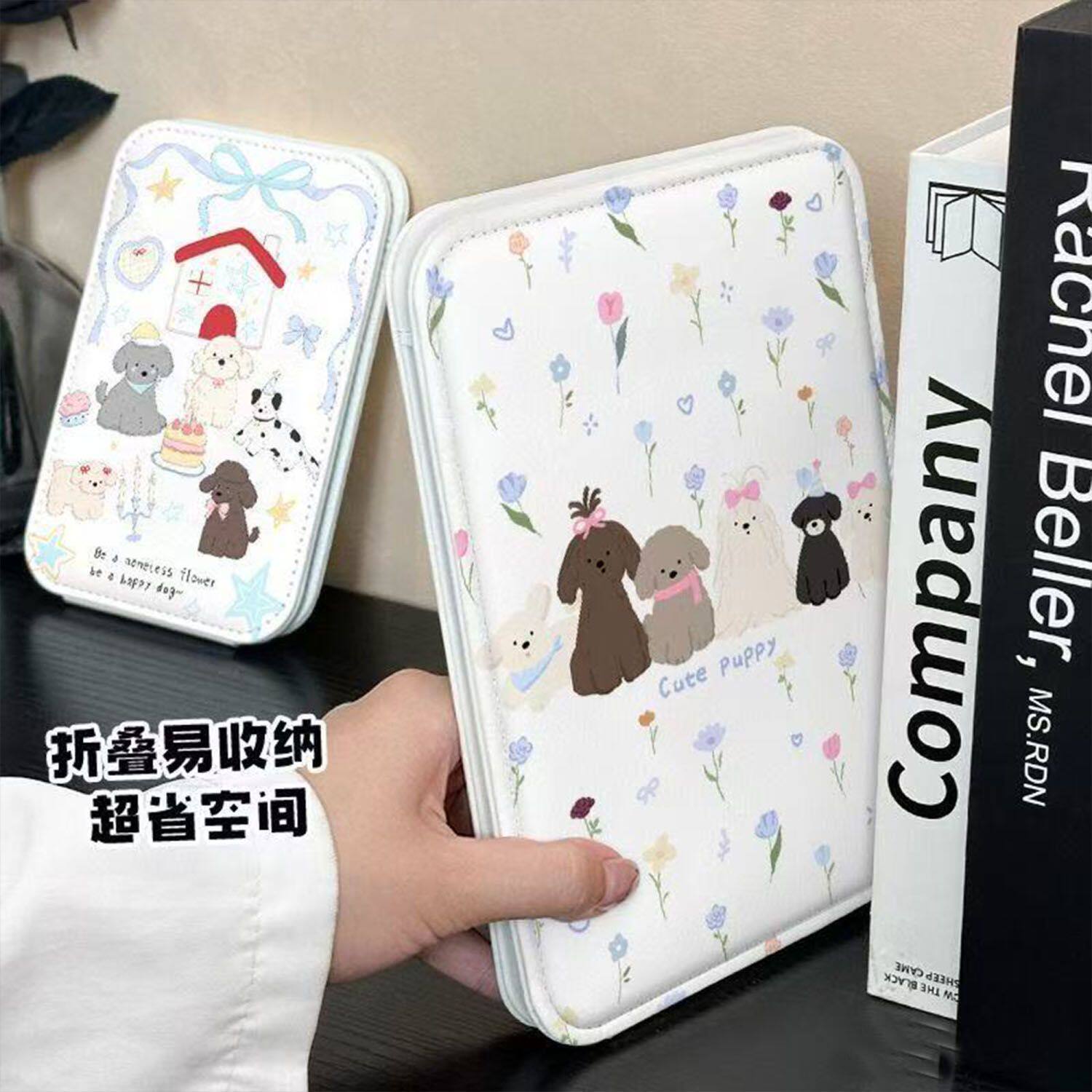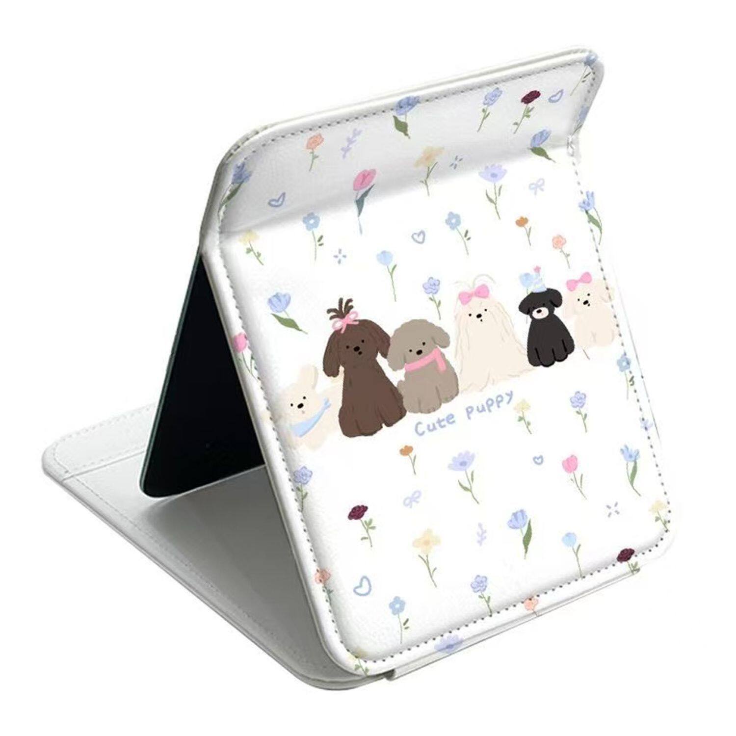 折叠镜家用桌面化妆镜子学生可爱猫咪花朵随身镜便携台式高清绿色
