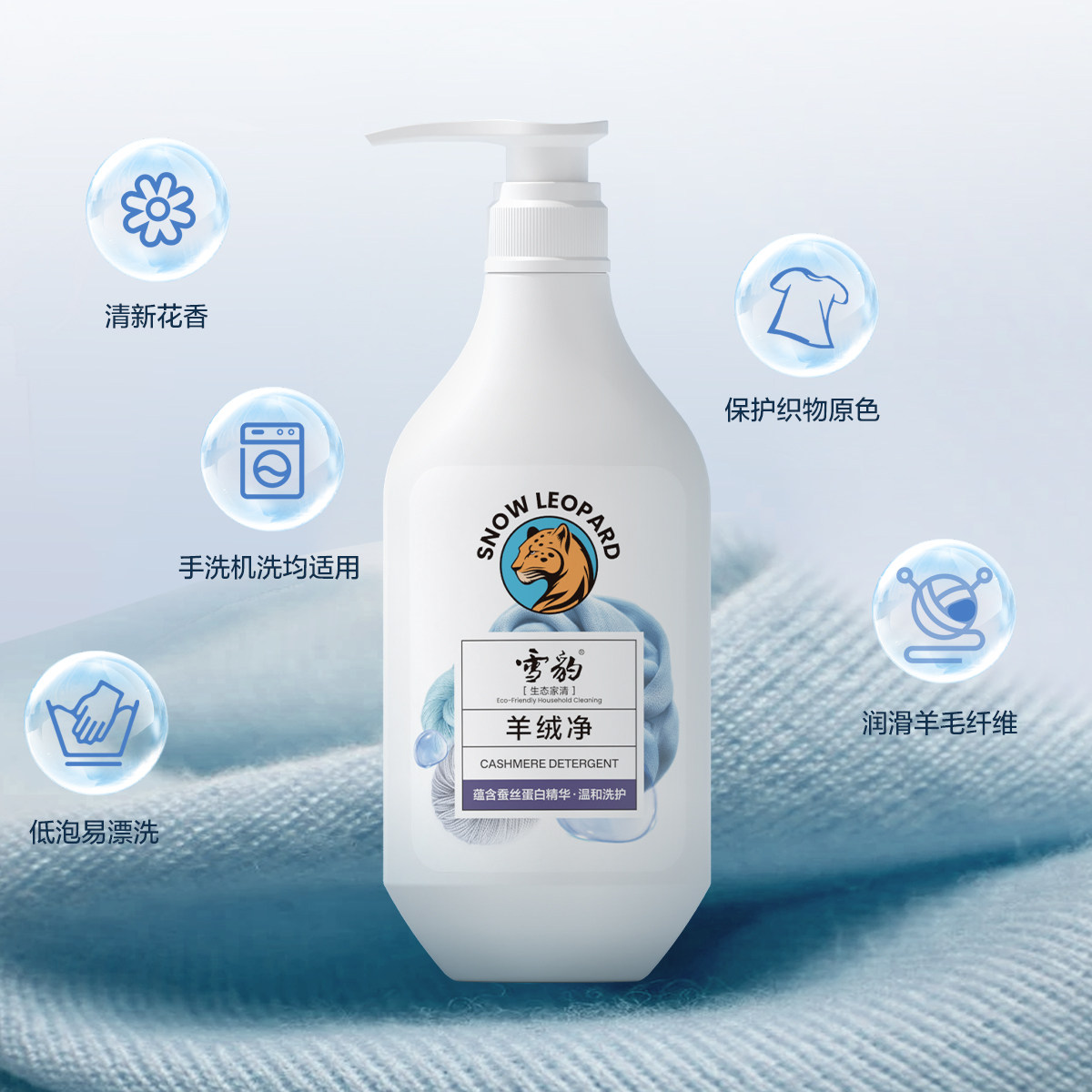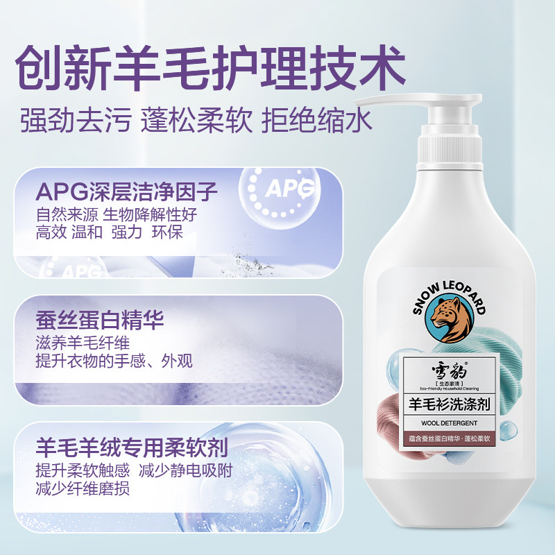 雪豹羊毛衫羊绒衫专用洗涤剂去污蓬松柔软香氛防缩水