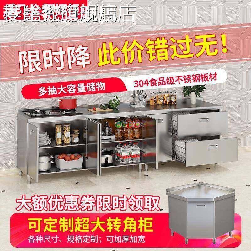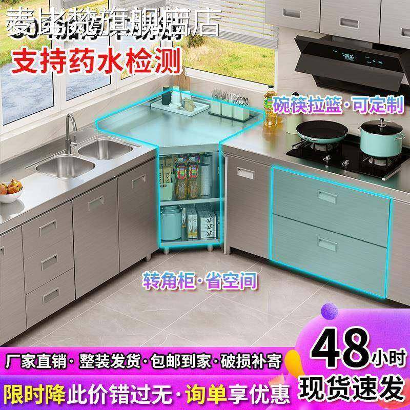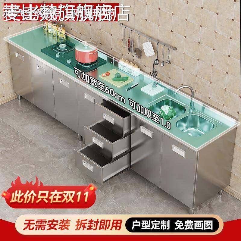 麦比梵304整体不锈钢橱柜厨房简易灶台一体柜租房家用多功能收纳碗橱柜床笠拉车