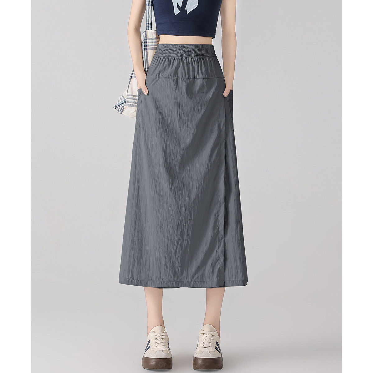 双侧带口袋棉绸绵绸人造棉高腰显瘦直筒裤女宽松休闲百搭阔腿长裤