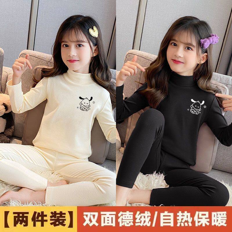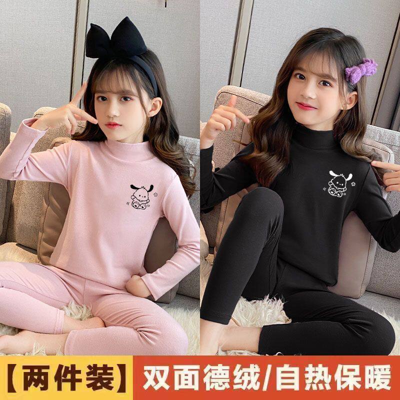 秋衣秋裤女童保暖内衣套装德绒半高领宝宝秋冬款中大童睡衣两件套